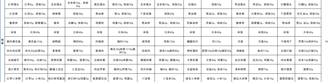 我校食谱制定符合《中小学学生餐营养膳食指南》,保证含有钙、铁及维生素A、维生素B2和维生素C的食物,并符合国家标准。一日三餐提供谷薯类、新鲜蔬菜水果、鱼禽肉蛋类、奶类及大豆类等四类食物中的三类及以上,膳食多样化。在满足中小学生生长发育所需能量和营养素需要的基础上,注重营养与口味相结合,落实“学校食育课程在餐厅范围内一切行为习惯”。