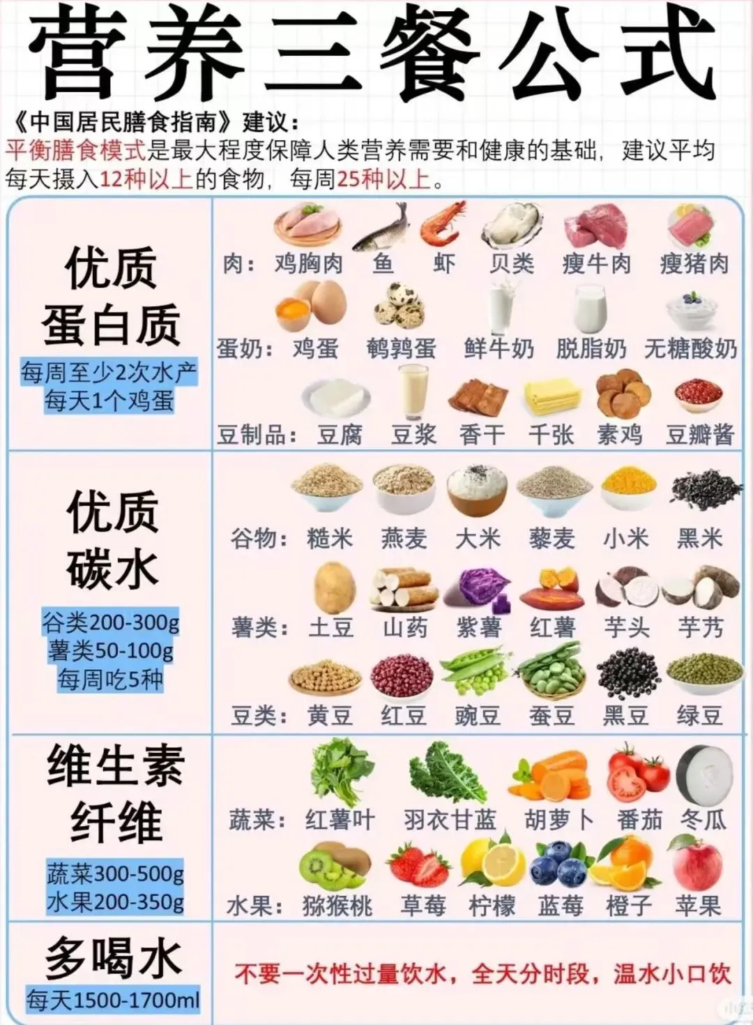 营养是健康之本,三餐搭配藏着身心活力密码。三餐需规律有序,早餐补足能量不敷衍,午餐均衡饱腹强支撑,晚餐清淡适量好入眠。食材优选天然新鲜款,粗细主食合理配,果蔬足量补纤维与维C,蛋奶肉豆补优质蛋白,满足身体日常消耗。烹饪多以蒸煮炖为主,严控油盐糖摄入,远离高油、高盐、高糖食物。多喝温水润脏腑,少喝甜饮少负担,吃饭细嚼慢咽助消化,不挑食不偏食,以科学膳食养强健体质,日常状态更在线。