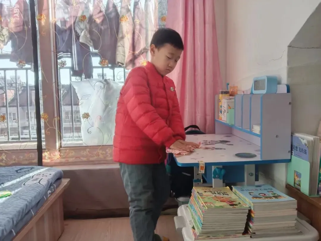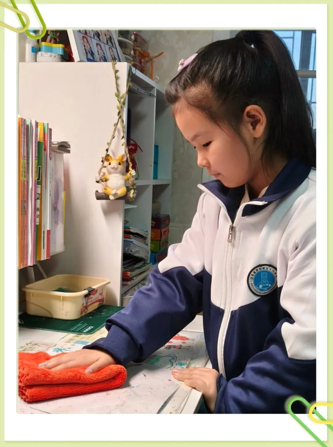 家庭中,劳动实践同样火热。书桌收纳、衣物叠放、房间归置,同学们化身家务小帮手,主动承担力所能及的家务,把劳动好习惯从校园延伸到家庭,用行动证明自己能当家,也让家长们看到了孩子们的成长与担当。