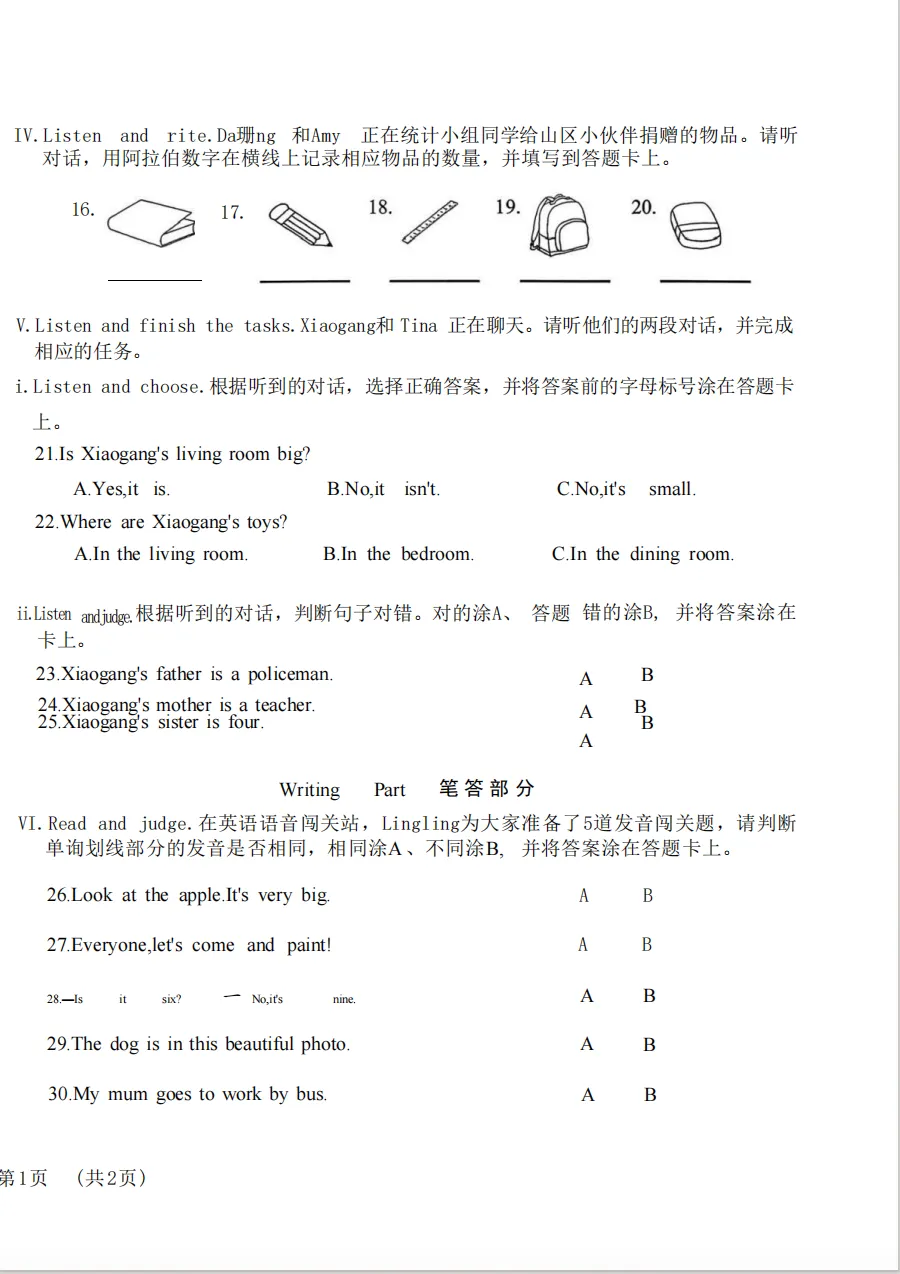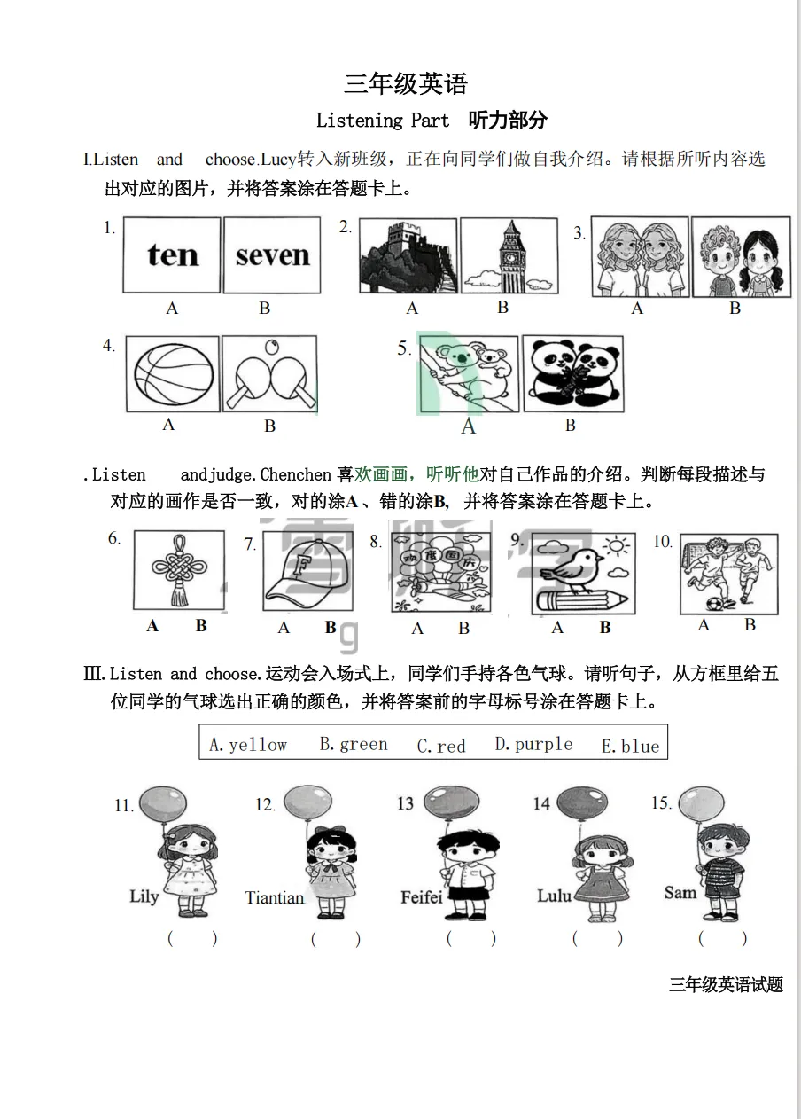 “青岛市北区3年级英语期末真题”电子版