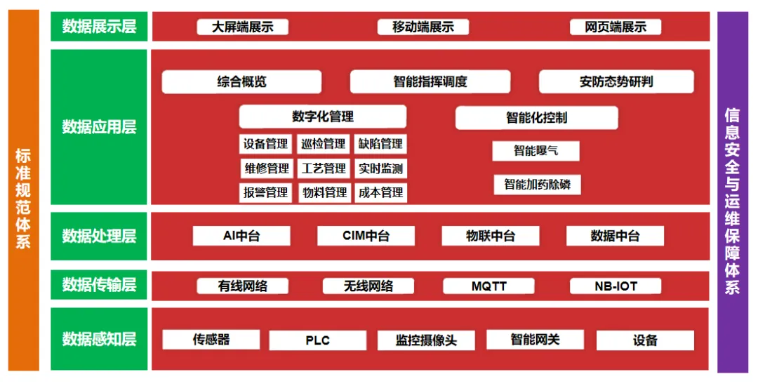 数据应用层围绕农村生活污水治理业务开展综合概览、智能指挥调度、安防态势研判、数字化管理、智能化控制等应用建设,打造全方位一体化的智慧水务平台。