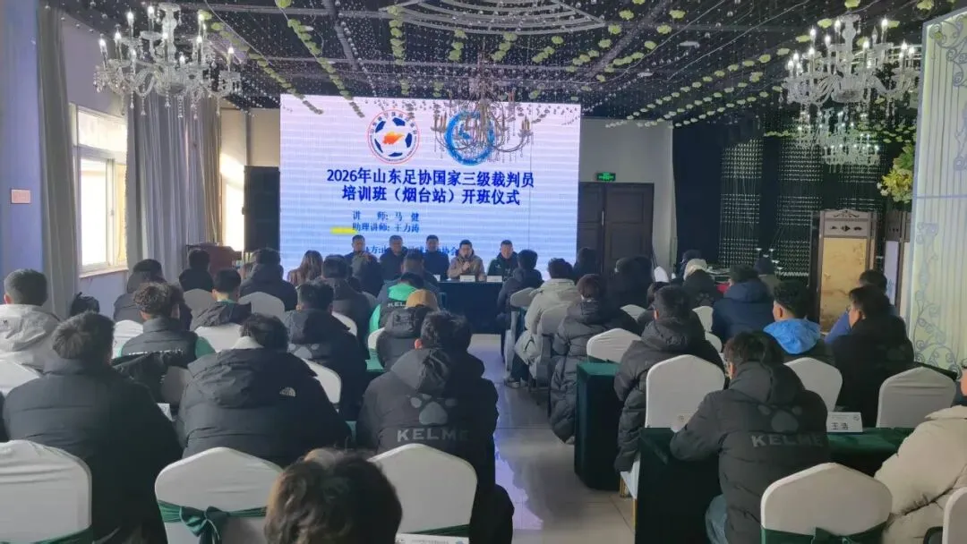 为进一步加强足球裁判员队伍建设,提高足球裁判员业务水平及综合素质,2026年山东省国家三级足球裁判员培训班(烟台第一期)于1月24日-25日在烟台市第十五中学举行,近50名学员参加培训。