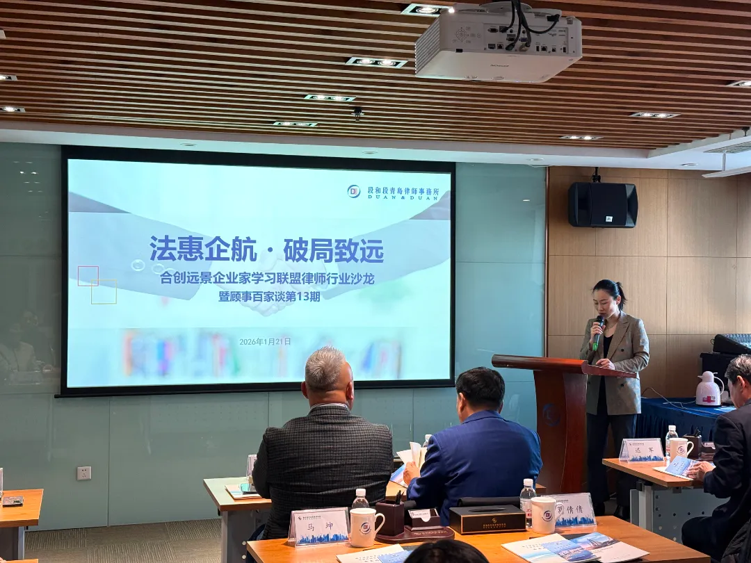为优化企业法律服务供给,破解企业发展难题,搭建律师与企业家高效沟通平台,2026 年 1 月 21 日,由青岛市律师协会法律顾问专业委员会、合创远景企业家创新转型研究院联合主办,上海段和段(青岛)律师事务所全程承办的 “法惠企航・破局致远” 暨顾事百家谈第 13 期惠企法律服务交流会,在段和段青岛研究院顺利召开。