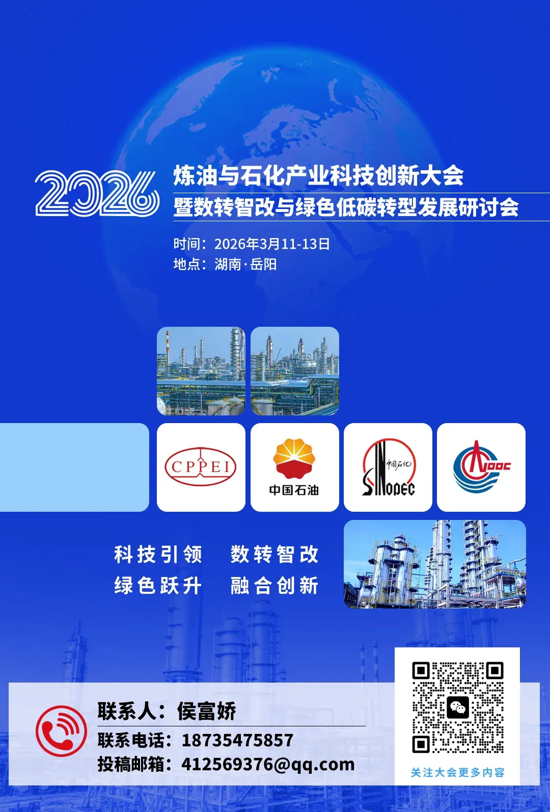 2026年是“十五五”规划开局之年,也是我国全面建设社会主义现代化国家新征程向纵深推进的关键一年。当前,全球能源格局深刻调整,新一轮科技革命和产业变革加速演进,人工智能、大数据、工业互联网等数字技术与实体经济深度融合,绿色低碳转型已成为全球共识和产业发展主旋律。在此背景下,炼油与石化产业作为国民经济的重要支柱,正面临转型升级、提质增效、安全韧性和可持续发展的多重任务。为深入贯彻落实党的二十届四中全会精神及中央经济工作会议部署,加快推动炼油与石化产业高端化、智能化、绿色化发展,强化科技创新引领作用,深化“数转智改”实践路径,构建现代化产业体系,我会定于2026年3月11-13日召开“2026炼油与石化产业科技创新大会暨数转智改与绿色低碳转型发展研讨会”。