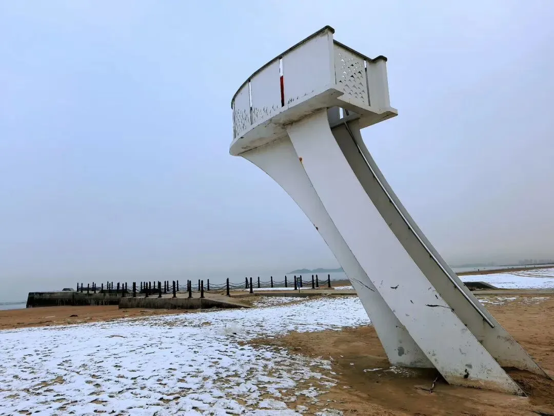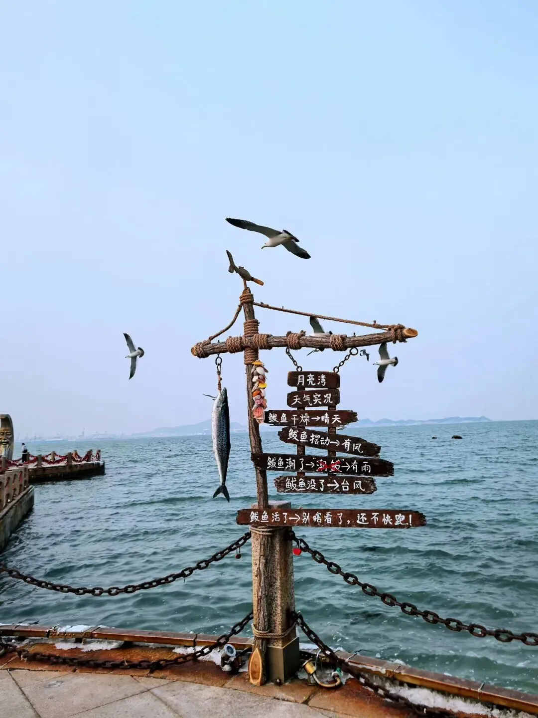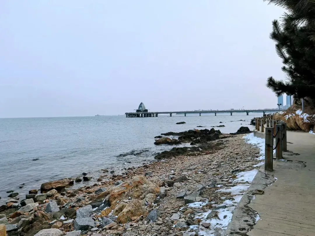 秋日的月亮湾最是清绝,天朗气清,海水蓝得愈发纯粹,岸边的栾树缀满橙红蒴果,与金黄的银杏叶相映成趣。浪潮褪去时,礁石间会留下搁浅的贝壳与海螺,拾起一枚,能听见大海的私语。偶有渔船归航,帆影点点,为这幅静美画卷添了几分灵动。冬日来临,海湾少了几分喧嚣,多了几分静谧。薄霜轻覆卵石,海水依旧奔涌,海鸥不惧寒意,在浪尖翻飞。若遇晴日,阳光洒在月亮老人的金属身躯上,折射出清冷的光,与湛蓝的海、灰白的云构成一幅极简的冬日诗画,坚守爱情的人们依旧慕名而来,让寒意中多了几分温暖。