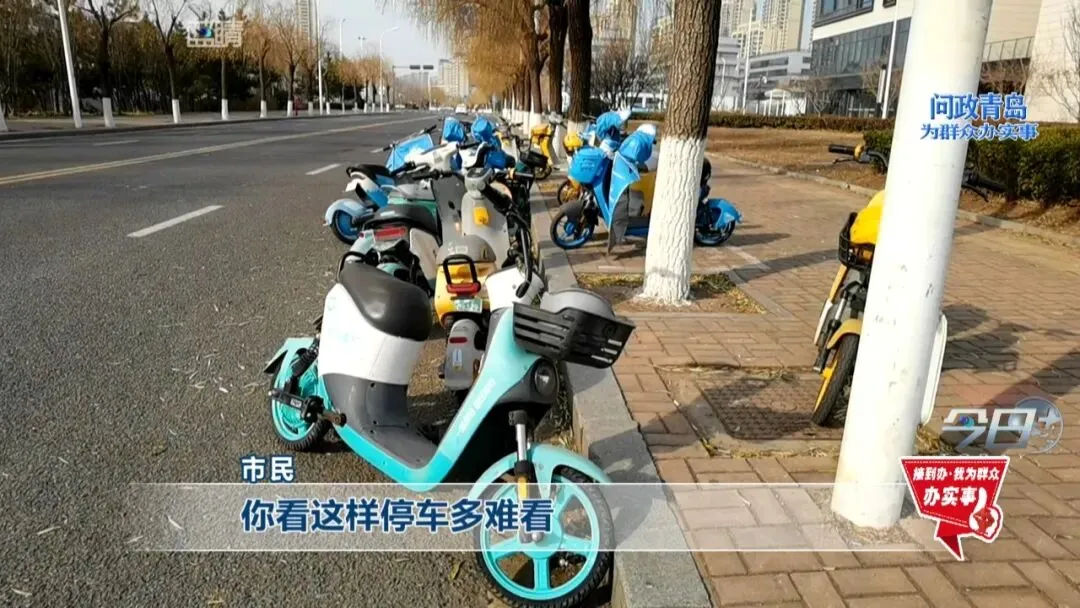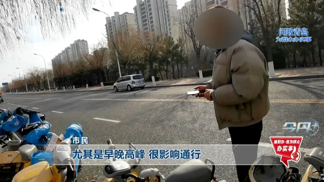 “两车道就成了单车道,共享电动车占了一个车道,尤其是早晚高峰,很影响通行。”市民说。“这样停确实很难看,显得马路非常乱。”