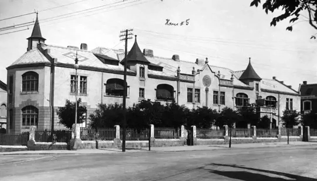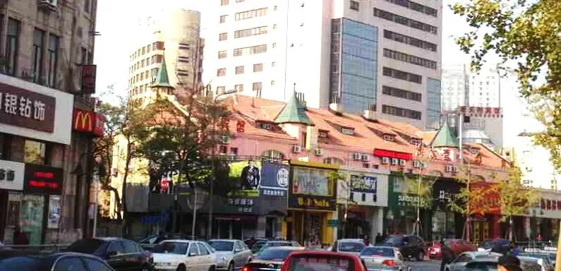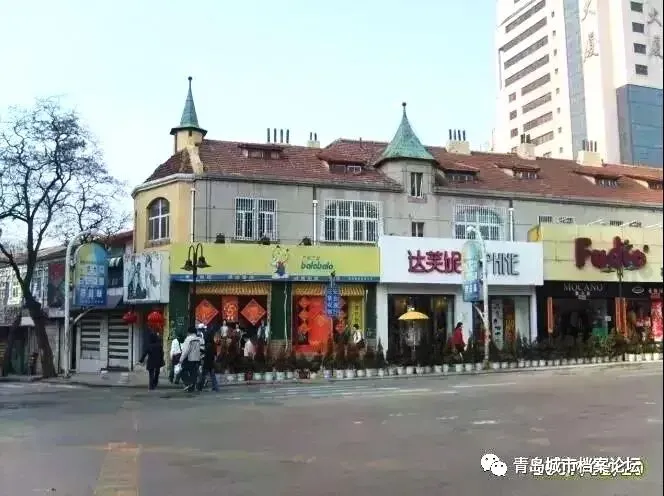 中山路中段西侧横跨肥城路与大沽路之间的一栋德式建筑,现在是“中山路城市记忆馆”,这是德地产公司祥福洋行于1906-1907年建设的一栋两层公寓楼(见下网络照片),屋顶设有三个塔楼作为装饰——