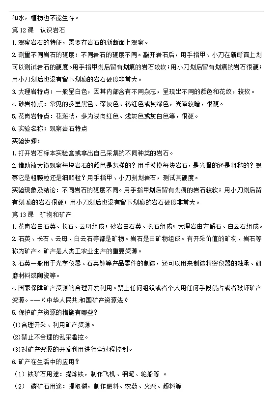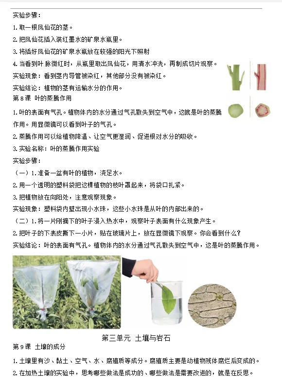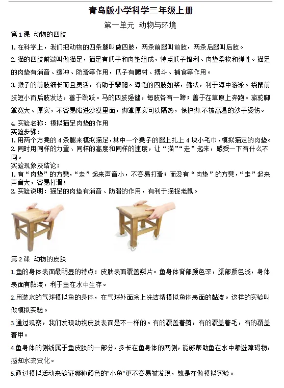 >青岛版小学科学三年级上册课课知识点梳理