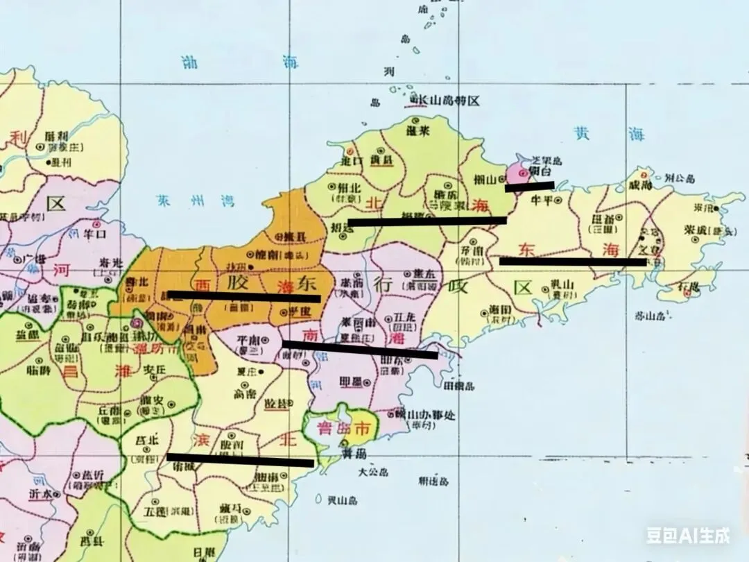 胶东,指胶莱谷地及其以东具有相似语言、文化及风俗习惯的山东半岛地区,是一个地理名词。按语音、文化、风俗习惯可细分为烟台、威海等胶东丘陵地区,和青岛、潍坊等胶莱河两岸平原地区。胶东三面环海,西接山东内陆地区,隔黄海与韩国、日本相望,北临渤海海峡。胶东地区优良港口众多,海岸线曲折,是区别于农耕文化的海洋文化发祥地,也是中国沿海重要组成部分,是重要的工业、农业、服务业基地,是经济较为发达地区、是现代化发展程度较高的区域之一。古时胶东地区为东夷族中莱夷、嵎夷聚居地,名称源于秦时胶东郡,治所即墨城(位于今平度市境内),这是“胶东”作为行政区划名之始。 汉代,曾为王国(西汉胶东王刘雄渠、刘彻)、侯国(东汉胶东侯贾复)。秦汉之后,其名淡出历史。“胶东”作为行政区划,再次出现在民国时期。1914年,袁世凯废府置道,设置胶东道(治福山烟台,今芝罘区),为山东省四道之一。1925年,张宗昌将胶东道划折为东海道(治烟台)和莱胶道(治胶县)。1928年,废道存县。抗日战争、解放战争时期,共产党又将“胶东”作为行政区划名。1941年4月,山东全省划分为胶东、清河、冀鲁边、鲁中、鲁南、鲁西6个行政主任区,其中胶东行政主任区公署(简称胶东主署)驻地在隐蔽的山区——栖霞县前寨村(今属苏家店镇)。1944年4月1日,胶东行署关于将“胶东主署”改称“胶东行署”的训令。1944年4月,胶东行政主任区改称胶东区行政公署(简称胶东行署),辖东海、北海、西海、南海4个地区的行政公署。胶东区行政公署机关驻地经历过栖东县方格庄村(今属栖霞市桃村镇)、海阳县楮树崖(今为徐家店镇取水崖村)、牙前县山东村(今属海阳县郭城镇)、牙前县河南村(今属海阳市郭城镇)等几个时期。