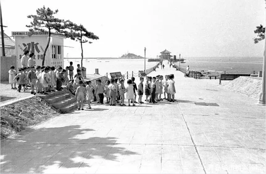 1958年的中国,发生了不少大事,也开始进入了一个充满热血和梦想的年代。1958年的青岛,经过解放后将近十年的恢复建设,城市出现了新的面貌。对于普通人民大众来说,那时的相机和照片还属于奢侈品,每一张照片、每一个表情都会汇成历史的印记。之前编发过1958年的照片,基本源自部分画册的翻拍,虽然影像质量不是很好,但却是那个时期珍贵的参考资料。而这些未注明作者的照片,原来都是源自老一代摄影家金石声先生的拍摄。栈桥,岛城百年象征,不论何时看到它都会有一种家乡的亲切之感,如今,从回澜阁北望,除了中山路1号青岛俱乐部旧址,青岛音乐厅(原青岛市礼堂),以及远处高耸的圣弥厄尔教堂外,其他老建筑基本都已经消失。美丽的前海海滨,一群幼儿园的孩子来到栈桥边。左侧的售货亭上的冷饮广告,看来那时还不叫冰糕,而叫冰棒。