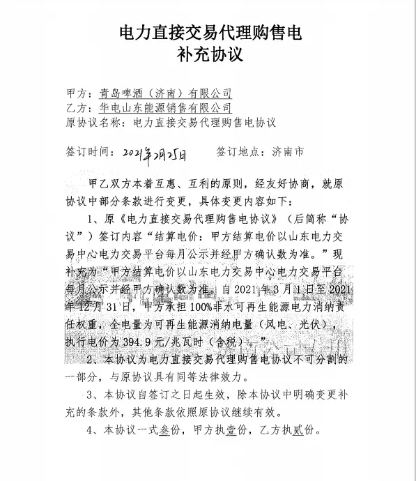 3、响应生态环境部要求,推进污水协商限值排放项目。2020年底,生态环境部发布《啤酒工业污染物排放标准》(GB 19821-2005)修改单,允许啤酒制造企业与下游污水处理厂协商约定间接排放浓度限值。青岛啤酒立即成立项目推进小组,开展项目可行性调研、技术及经济测算,与意向工厂所在地的生态环境局、水务管理局、行政审批局、下游污水处理厂等单位会商,积极推动项目签约。目前青岛啤酒在全国已有17家制造工厂与所在地下游污水处理厂签署排水协议,啤酒废水可经简单预处理后,直接排放给污水厂作为碳源利用,降低了工厂污水电耗、污泥处置费用、机物料消耗费用等,降低了工厂的碳排放量。经测算,每年可节约污水运行费用2000万元,降低碳排放10000吨;下游污水处理厂可以节约外购碳源费用1700万元,实现社会效益及经济效益双赢。