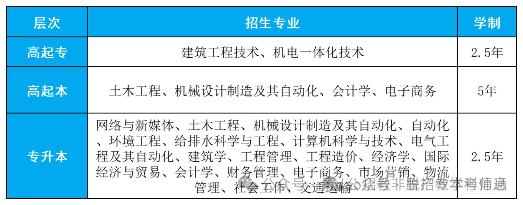 (注:招生专业、学制及考试科目以各招生地区省级招生考试机构公布的为准)