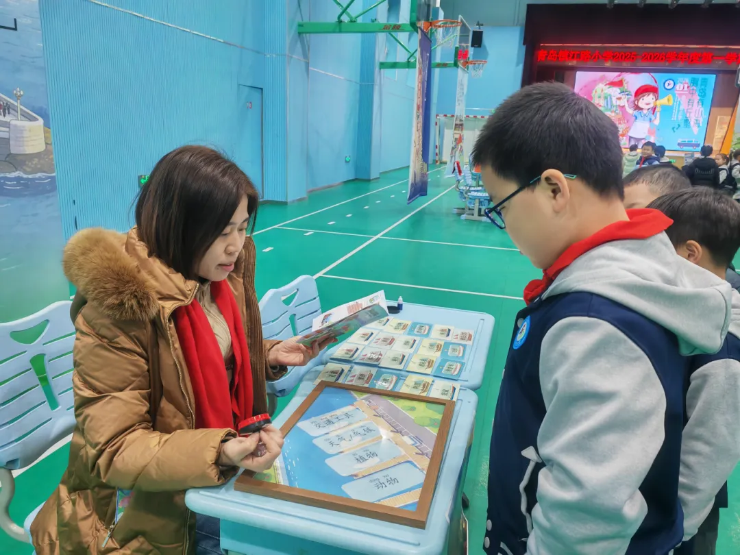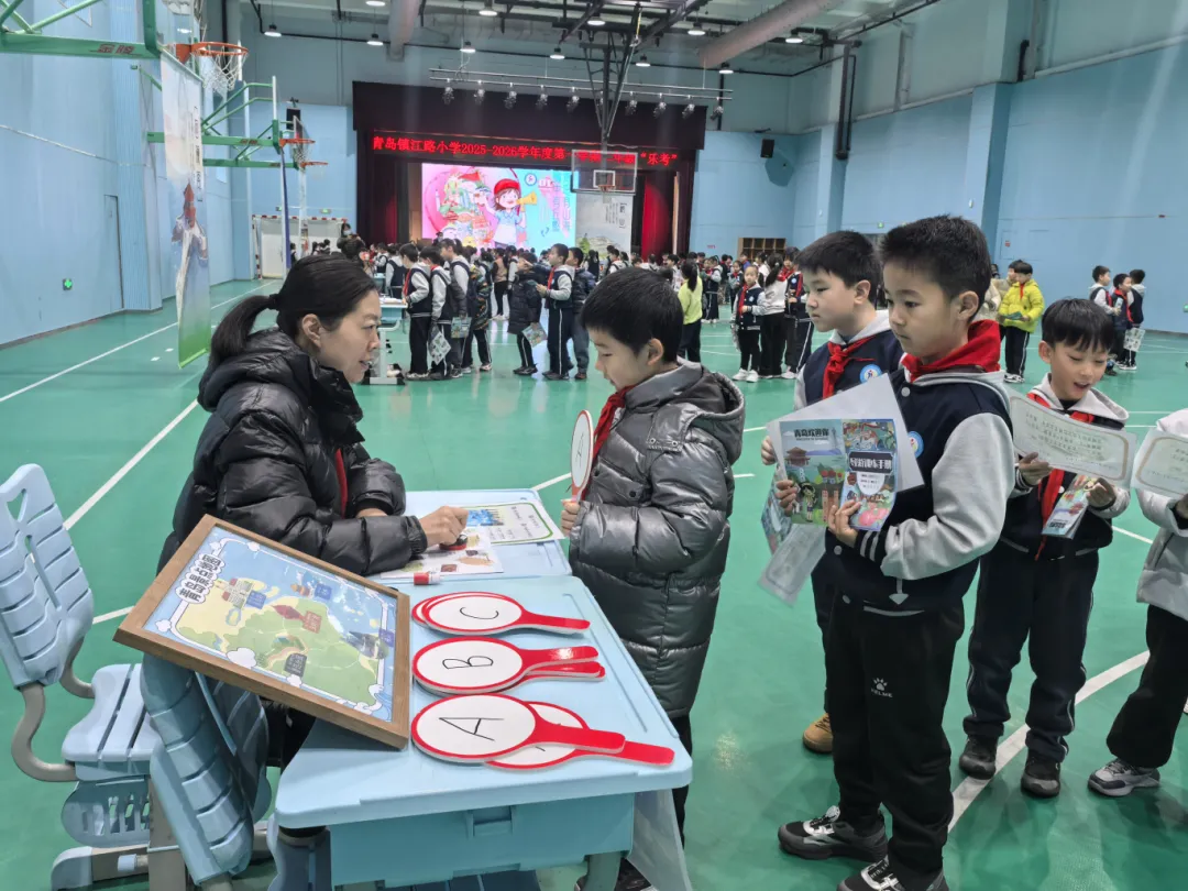 1月26日,青岛镇江路小学以“马年游青岛”为主题,将马年“奋进、祥和”的文化寓意与青岛“红瓦绿树、碧海蓝天”的城市特色深度融合,为学生们打造了一场别开生面的期末乐考。学生们化身“小导游”,手持“闯关卡”,在沉浸式的闯关体验中,依次挑战“五四广场辨方向”、“栈桥边分词语”、“上街里说英语”、“糖球会算价格”、“崂山脚下背古诗”等五大关卡,搭配勋章、锦旗、通关卡等激励机制,通过师生互动、成果展示等多维评价方式,在“青岛旅行”的真实情境里,在沉浸式的闯关体验中,将“知识点”转化为“素养点”,把课本知识变成了实用的学科素养,也为即将到来的马年增添了一抹童趣与活力,彰显校本化育人特色。