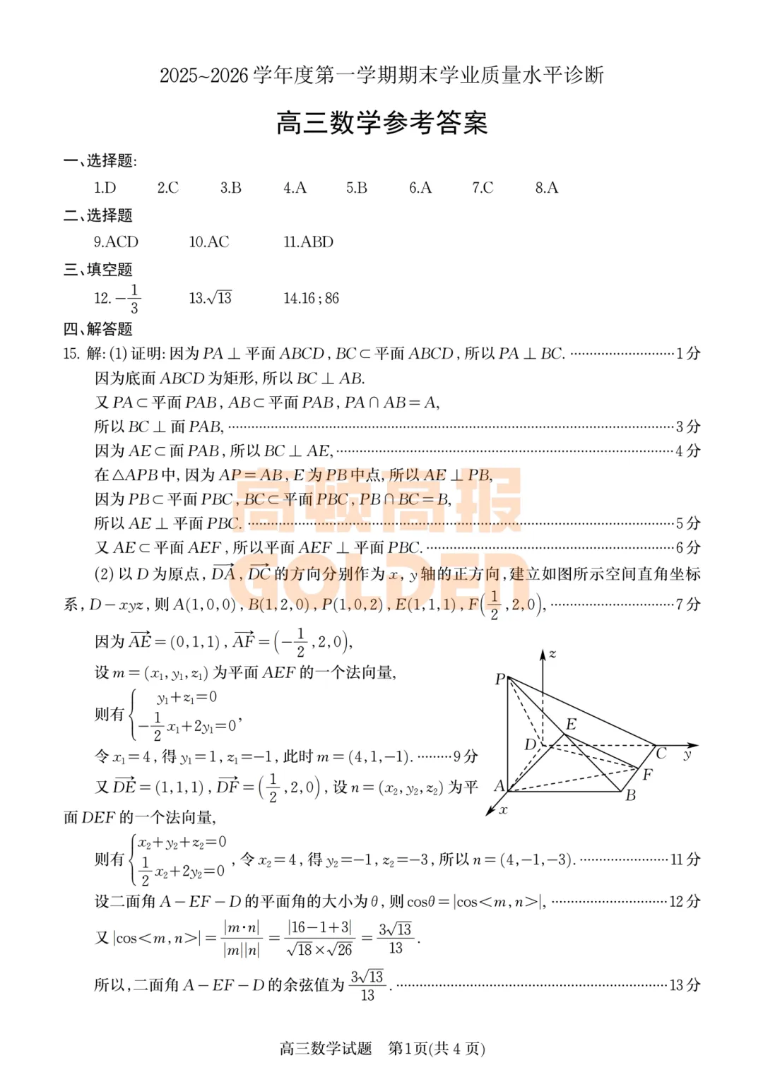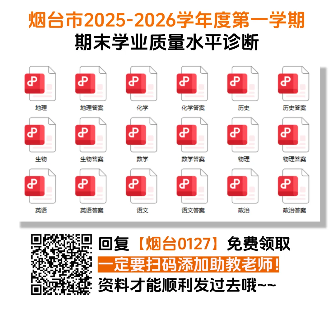 烟台市2025-2026学年度第一学期期末学业质量水平诊断全科试题及答案。
