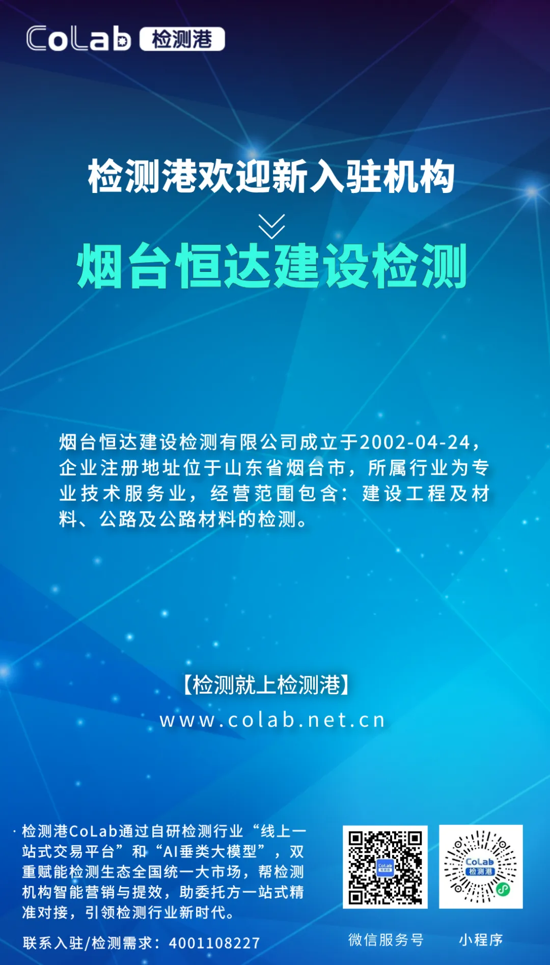 烟台恒达建设检测有限公司入驻检测港,开启数智化获客新时代!