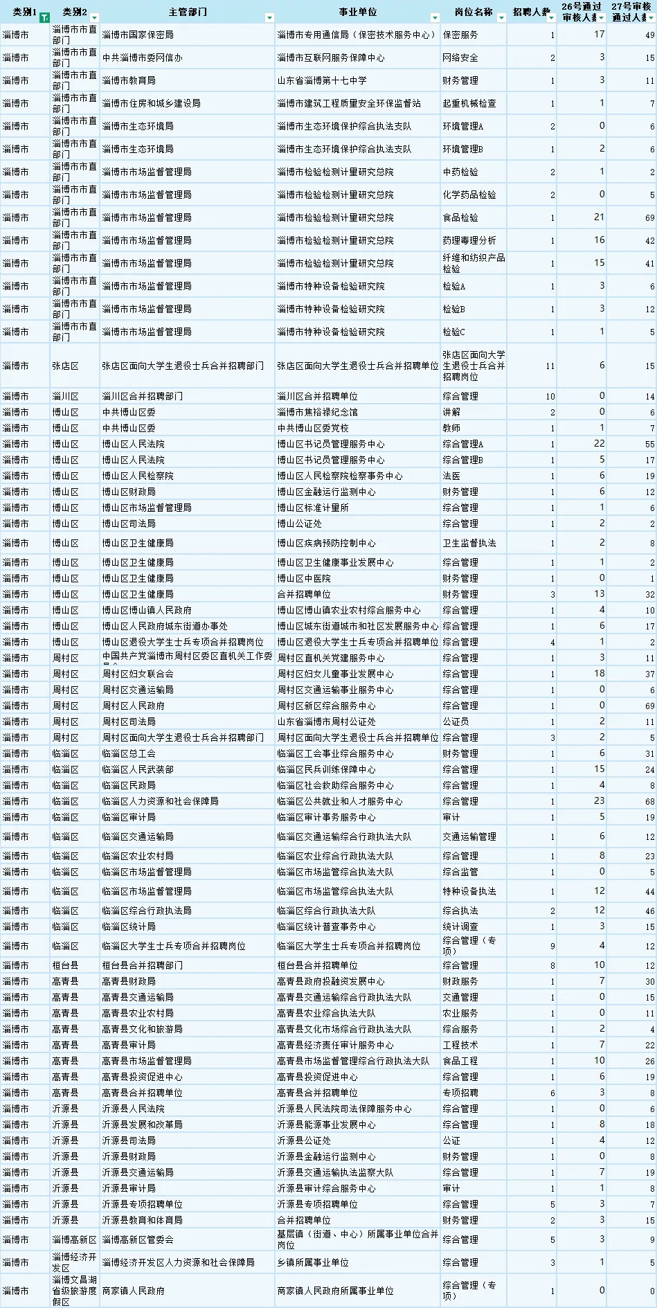 【烟台、枣庄、淄博市事业编各岗位报名人数】2026年度山东省事业单位初级综合类岗位公开招聘人员(截止1月27日16:30报名情况)