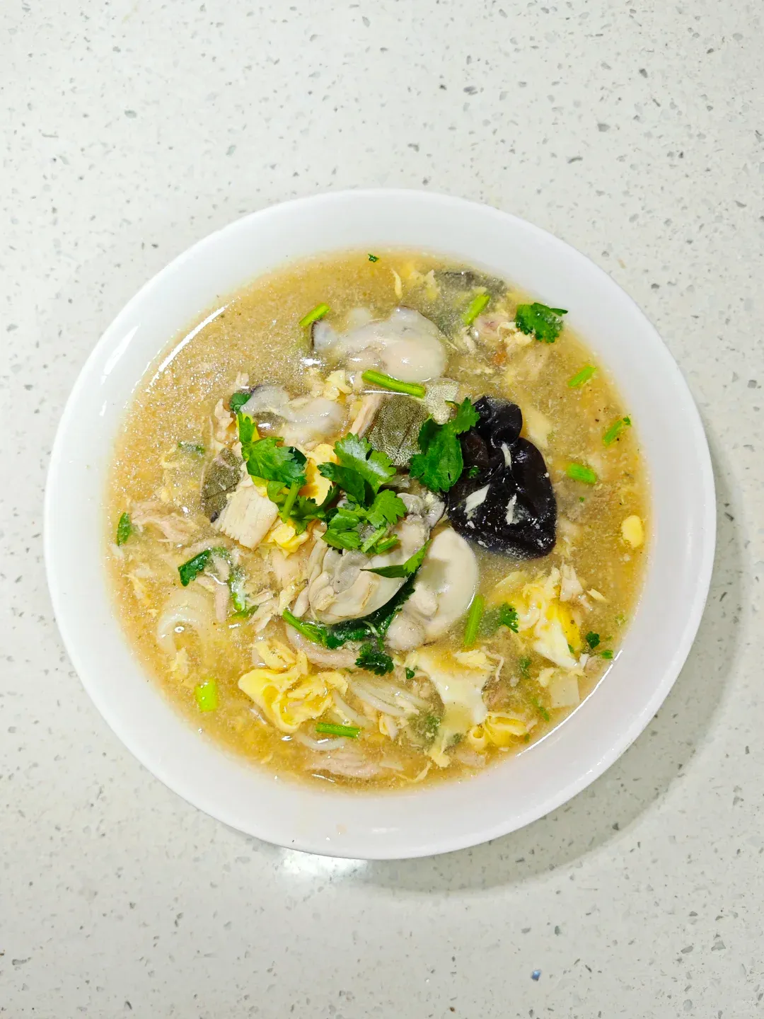 口感咸鲜,海蛎子肉碎在里头,重在喝那口热乎卤。