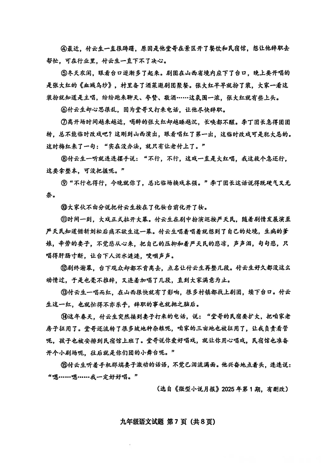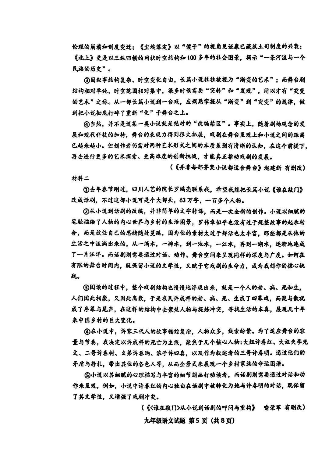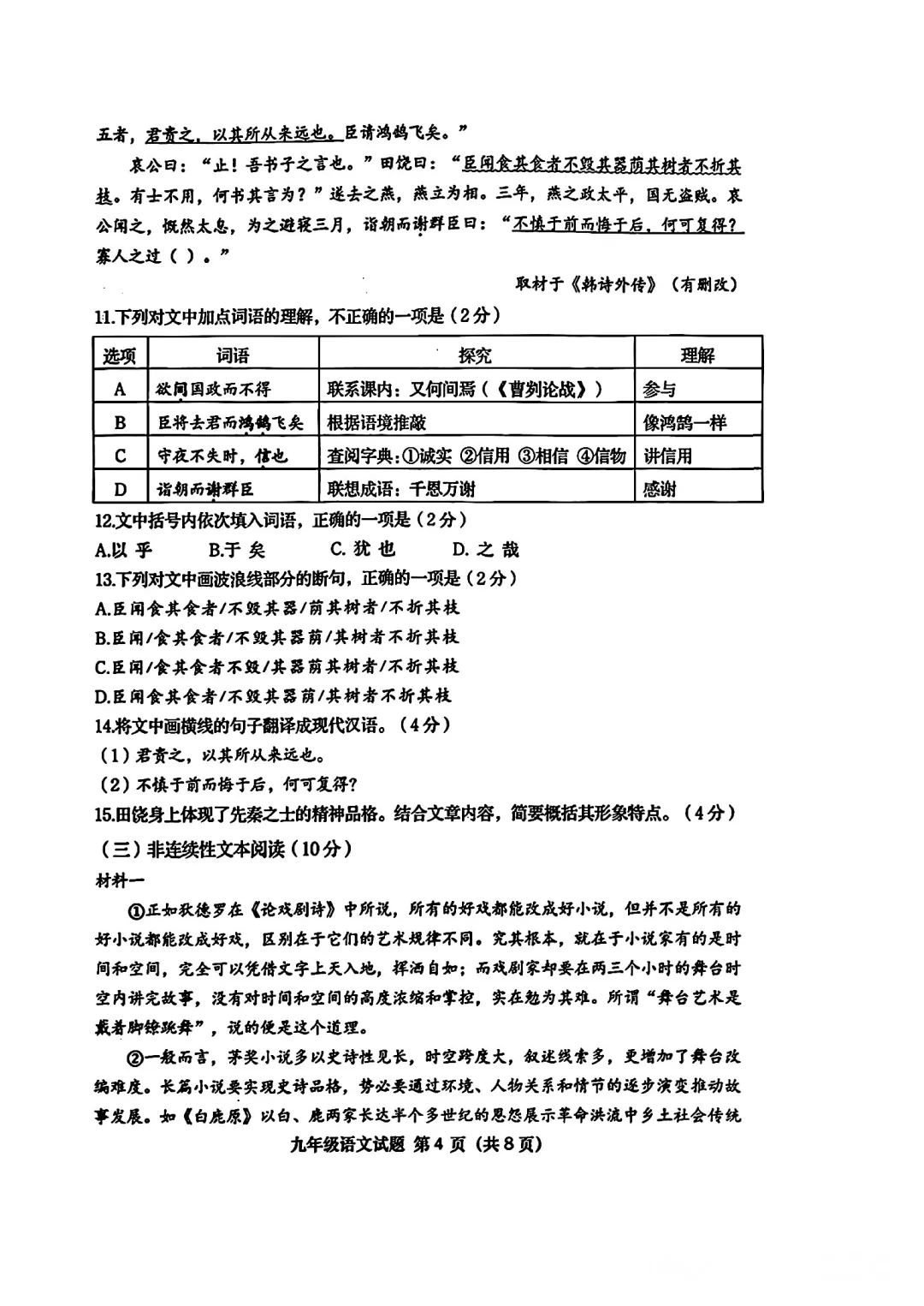 2026最新!青岛市初三上期末考试语文真题(市北区)