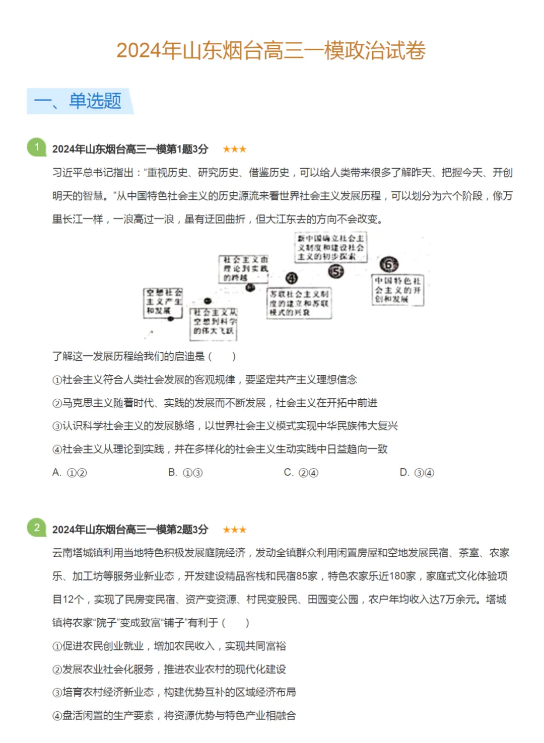 2019-2024学年山东烟台高三一模政治真题及答案解析