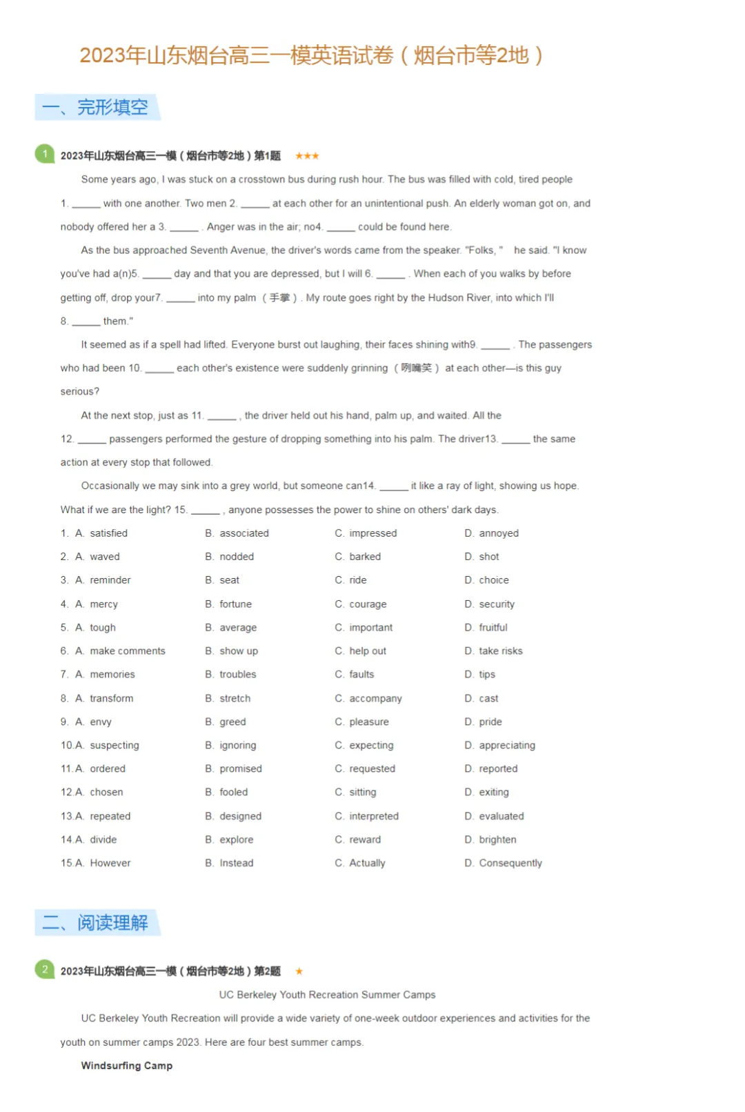 >2018-2023学年山东烟台高三一模英语真题及答案解析