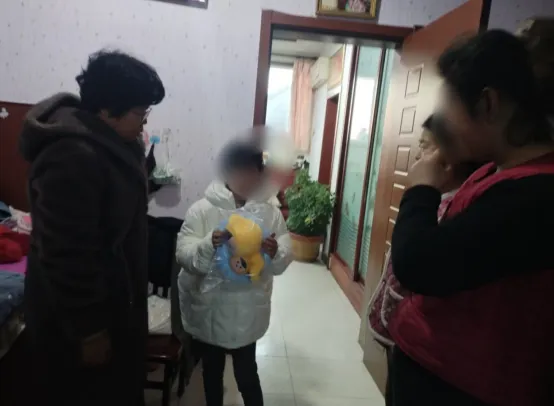 “来,宝贝,试试这件外套合不合身?”于伟东秘书长轻轻拿起天蓝色的外套,耐心地帮小涵穿上。衣服的尺寸刚刚好,柔软的面料贴合身形,小涵低头摸了摸衣服上的小花,嘴角不自觉地向上扬起。随后,她又主动试穿了米黄色外套,镜子里的自己被温暖包裹,小脸上渐渐绽开了灿烂的笑容,那笑容纯粹而治愈,如同冬日里的一缕暖阳,驱散了所有的拘谨与寒意。两位志愿者同仁看着孩子开心的模样,也纷纷露出欣慰的笑容,大家围坐在一起,陪小涵摆弄新玩具,听她分享日常的小趣事,屋内欢声笑语不断,温馨的氛围让人忘却了窗外的寒冷。
