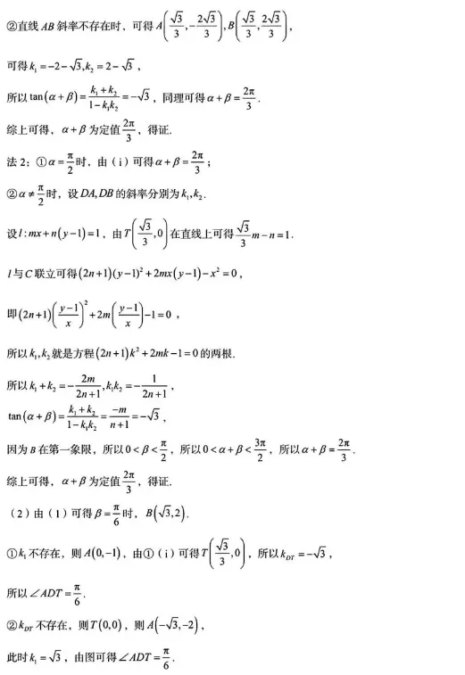 【理科实验班】椭圆方程 · 斜率定值 · 切线方程-圆锥曲线模拟压轴题解析实例