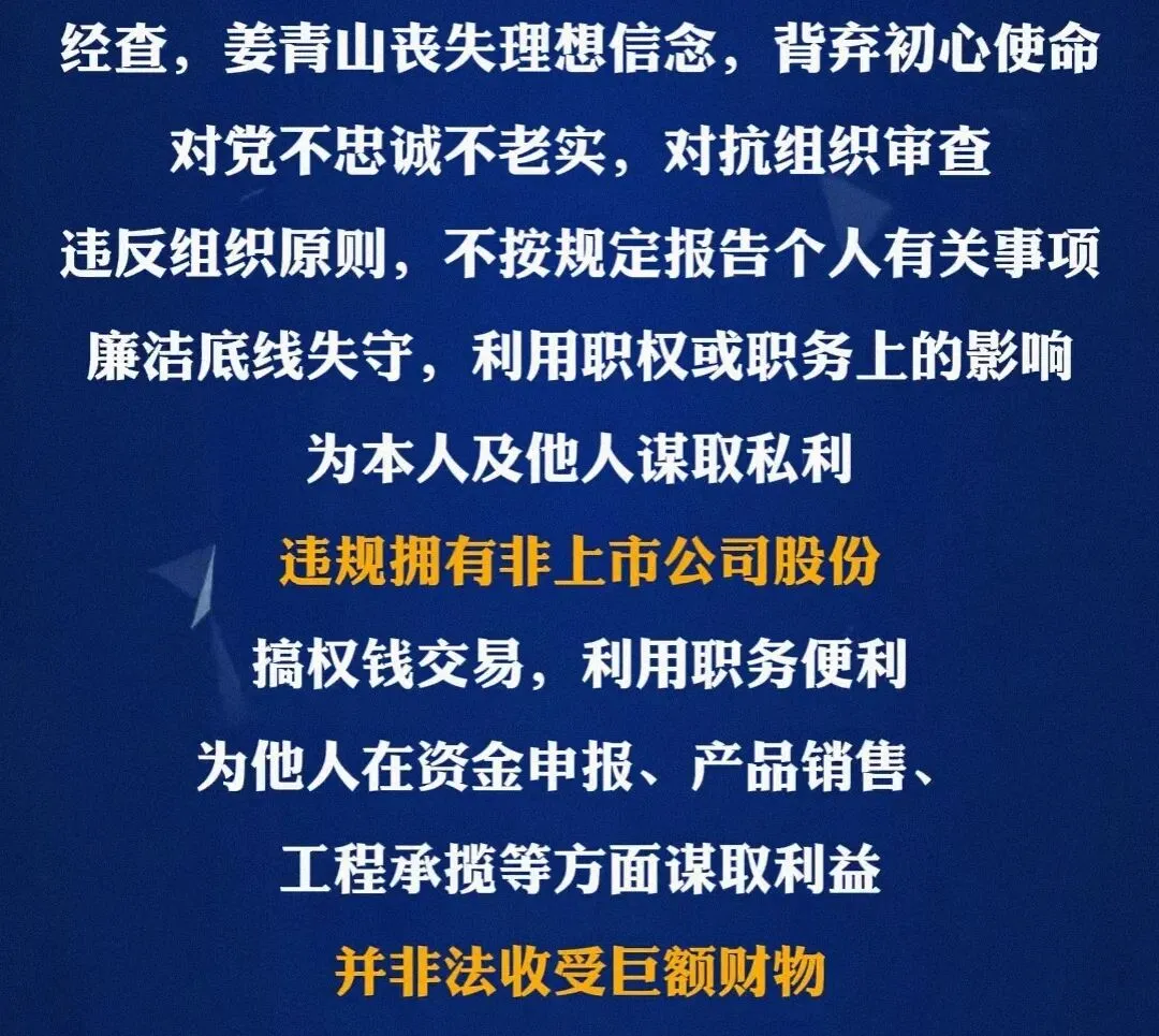 至于大家关心的家属贪腐、具体贪污金额,官方没细说,但从“巨额财物”“权钱交易”这些表述来看,数额肯定不少 。网友们都炸了,评论区清一色支持:“反腐就该这样,不管退休多久都要查”“可惜了曾经的功绩,底线一破啥都没了”。现在案件刚移送检察院,还没判刑,但开除党籍、取消退休待遇、收缴违法所得,这处罚已经够重磅了,后续就等法院的判决。说真的,看这事儿挺唏嘘的。姜青山本来有大好名声,为啥非要晚节不保?还不是没守住底线。给大家提个醒:不管啥岗位,权力都是人民给的,别想着“退休就安全”,反腐从来没有“保质期”。做人做事还是得干干净净,不然赚再多钱,最后也是竹篮打水一场空!!!