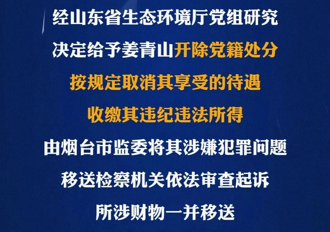 一个能硬拒五百万美元污染项目、让雁鹭重现母亲河的环保局长,居然是个“两面人”?2026年刚开年,山东纪委就扔出重磅消息:烟台市原环保局党组书记、局长姜青山被开除党籍,退休待遇全取消,涉嫌受贿犯罪被移送检察院审查起诉 !这反转比电视剧还刺激,66岁本该含饴弄孙,结果晚节不保,到底咋回事?