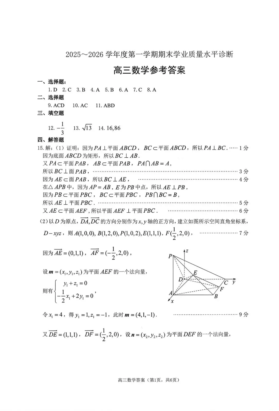【好卷速递】高三上:山东烟台2026届高三上学期期末数学试题含答案