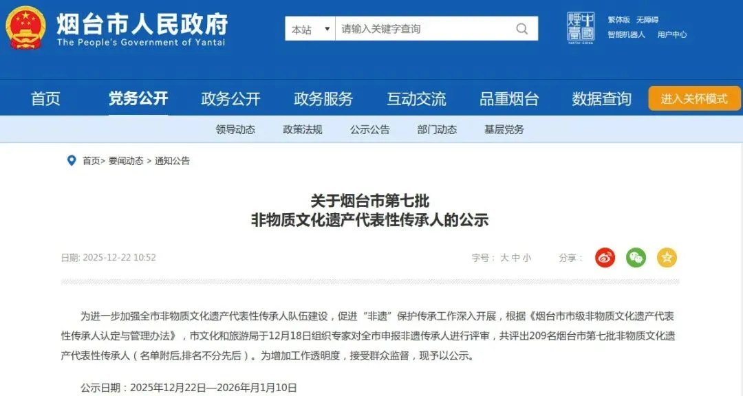 喜报!烟台市级非遗项目代表性传承人名单公布!莱州24人入选!