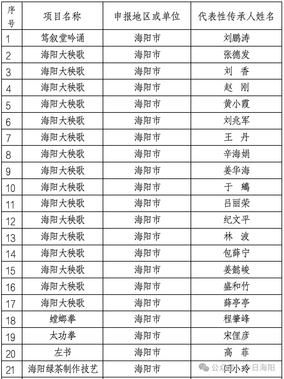 >祝贺!海阳28人入选烟台市第七批非物质文化遗产代表性传承人名单