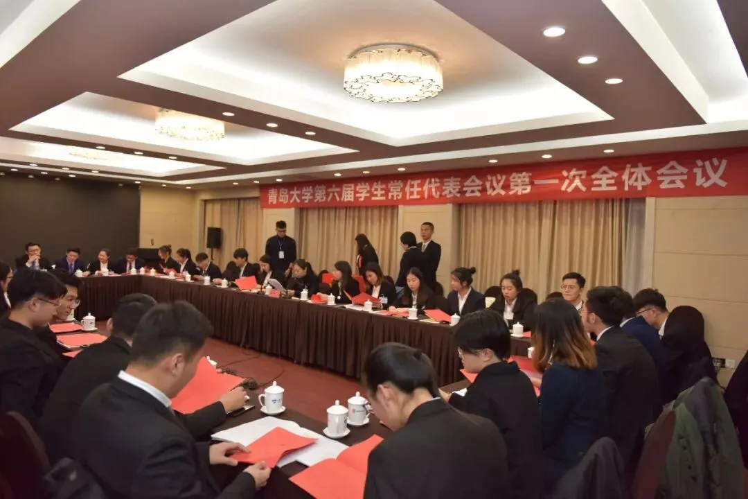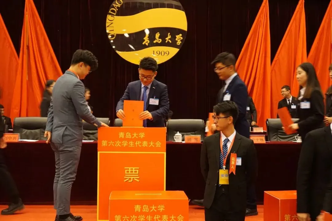 根据日程安排,各位代表以满腔的政治热情和高度的负责精神,认真审查并通过了学代会、研代会工作报告,表决通过了《青岛大学学生会章程修正案》(草案)、《青岛大学学生代表大会组织条例修正案》(草案)、《青岛大学研究生会章程修正案》(草案)、《青岛大学研究生代表大会组织条例修正案》(草案)。在总监票人和监票人的监督下,以无记名投票方式,选举产生了第六届学生常任代表会议代表、第三届研究生常任代表会议代表,第六届学生常任代表会议代表共44名,他们是(按姓氏笔画为序):卫跃强、王昱凯、王姿俨(女)、王椿升、毛瀚卿、卢士琳、田雪(女)、付钰(女)、任江珊(女)、刘中兴、刘旭平、刘凯硕、刘璐(女)、刘霞(女)、孙冬雪(女)、孙佳佳(女)、牟浩源、杜家豪、杜蕴慧(女)、李鑫楠、肖龙光、宋杰、张凤灵、张俊锋、武文志、周亚男(女)、周林雪莹(女)、宓瑶(女)、房舒(女)、孟成真、赵珊(女)、赵浩(女)、胡青含、胡杰、段凌、袁一鸣、栗统、候雯婷(女)、殷蒙爱(女)、陶宁、韩青燕(女)、蒲先虎、蔺浩如、燕心悦(女);第三届研究生常任代表会议代表共36名,他们是(按姓氏笔画为序):卜凡晨、马荣(女)、王云龙、王远达、王潇璐(女)、邢晓露(女)、曲美洁(女)、刘帅、刘超、刘永祥、刘金铭(女)、孙婷(女)、李志峰、李晓燕(女)、李鹤(女)、杨九勇、陆嘉慧(女)、杨润贤、吴泉宏(女)、宋姝萱(女)、张莹(女)、张正强、张筱璇(女)、林冠屹、周晗(女)、战璐(女)、祖煜然、贾洋洋、贾鑫晶(女)、顾少强、徐琳(女)、黄硕、崔纪宏、葛睿彤(女)、韩丰泽、戴今庸。