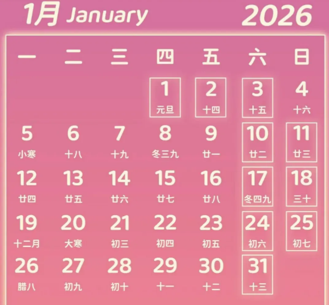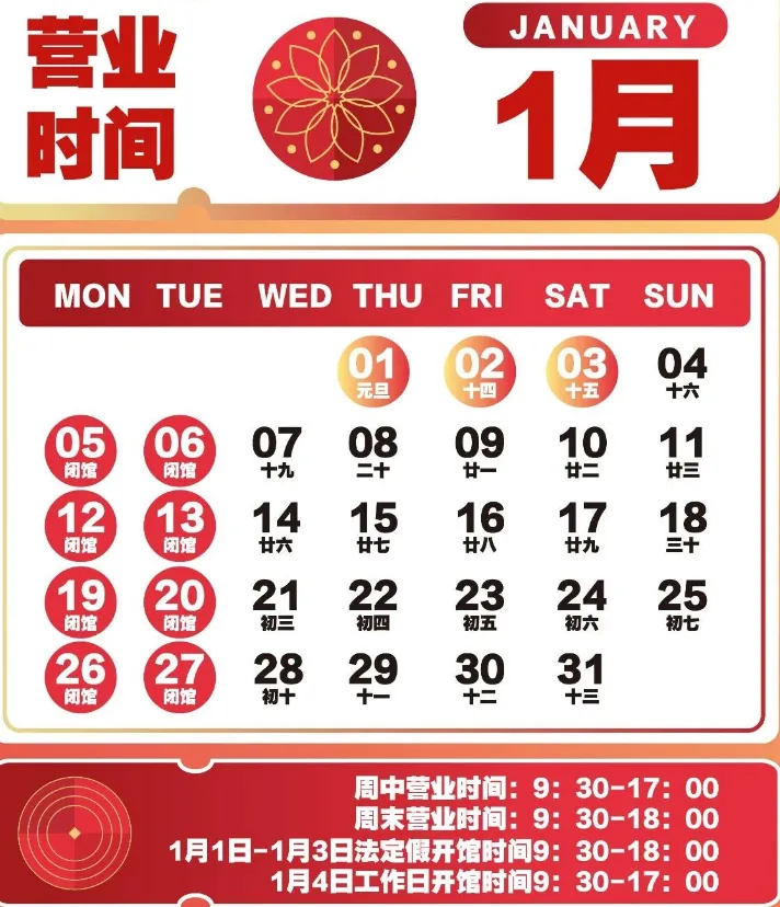 1月营业时间安排