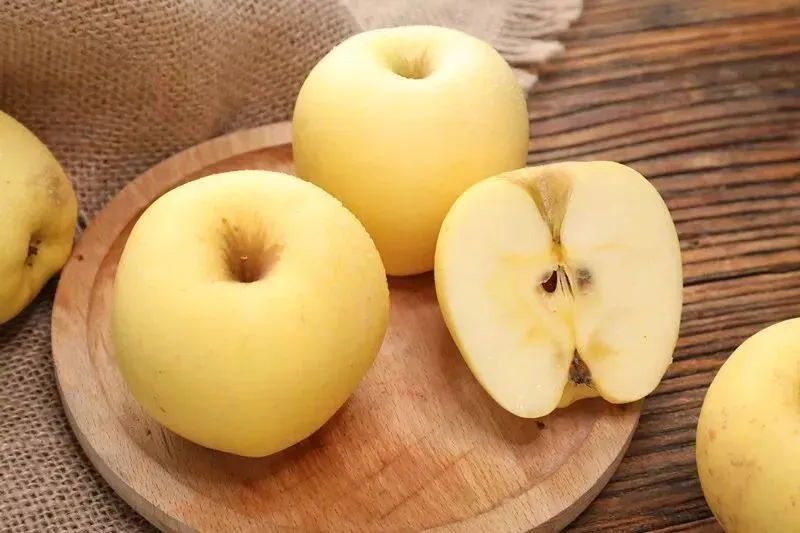 传统老品种,果皮金黄,肉质细绵,果汁足,清甜有香,适合老人小孩,也可做苹果泥。套袋后金帅的果皮呈均匀淡黄色,果点明显且分布均匀(浅黄 / 白色小斑点)。