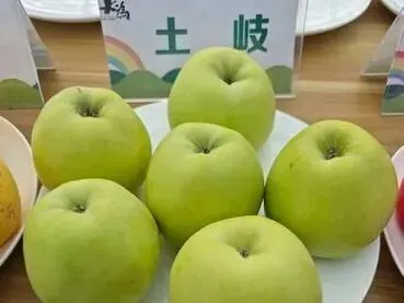土岐:黄绿色果,果型圆锥端正,糖度约 18%,果肉乳白细嫩,脆爽多汁,果香浓郁。土岐(TOKI)是烟台近年引进的高端品种。黄绿底 + 鲜红晕双色品种(常归为黄色系),由日本青森县土岐传四郎先生用王林与富士杂交育成,因独特的水蜜桃香气被誉为 "水蜜桃苹果"。