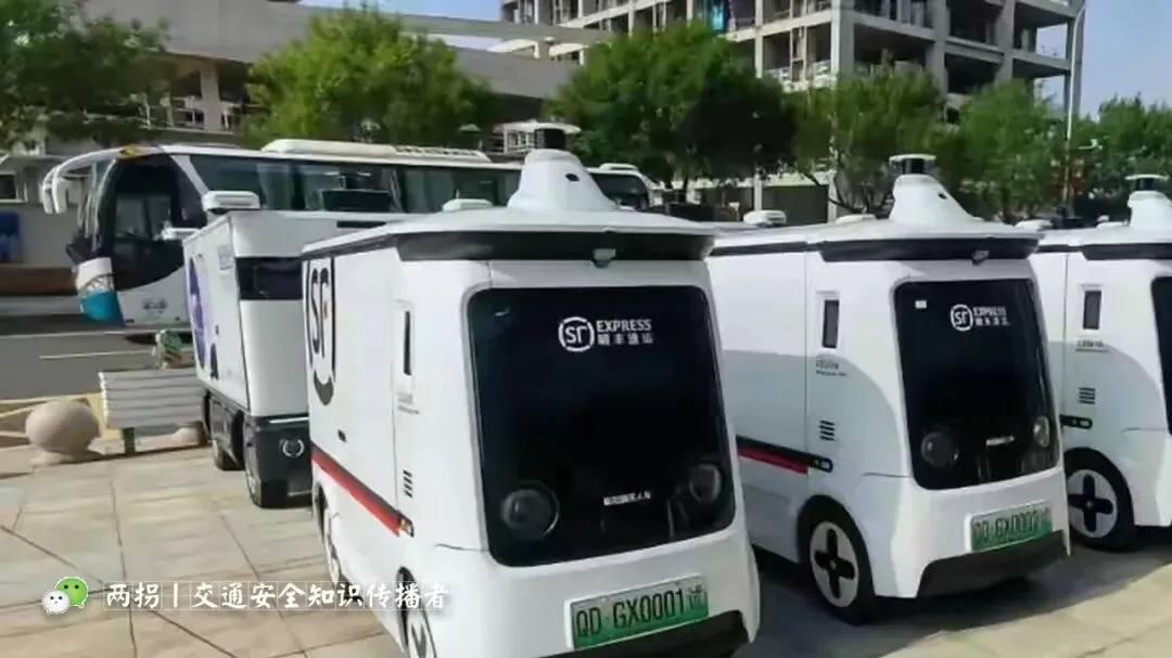 无人车道路测试时,张贴在车身的标识为:低速无人驾驶道路测试车辆,无人车商业示范时,张贴在车身的标识为:低速无人驾驶商业示范车辆。