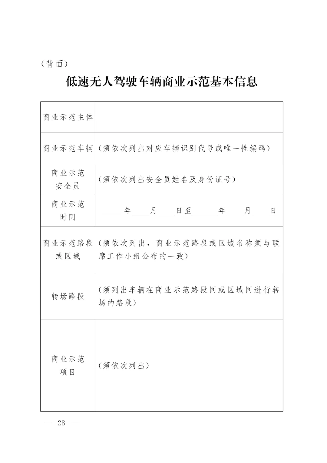 (四)无人车商业示范申请书(附件2);