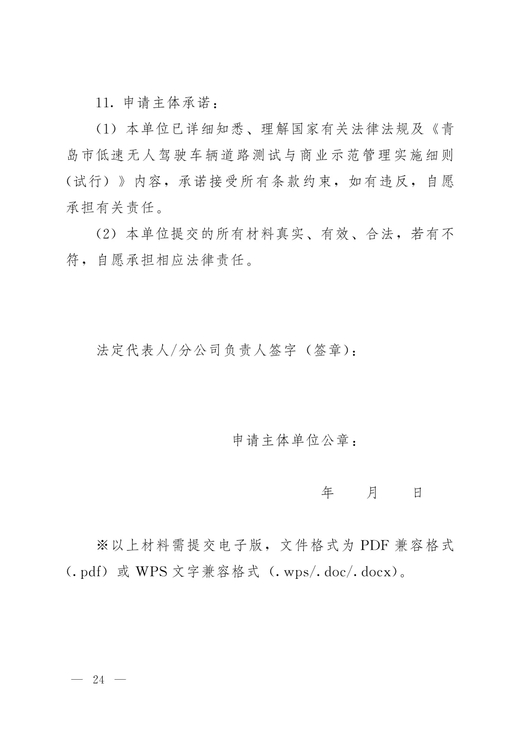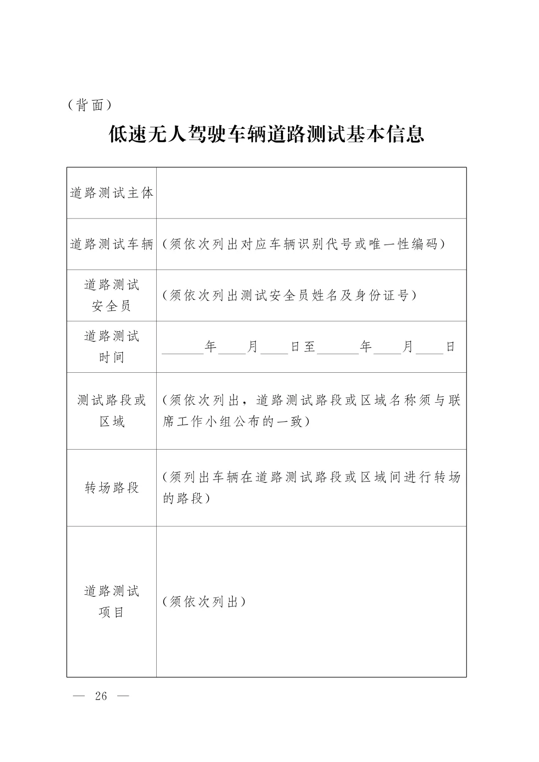 (八)无人车道路测试申请书(附件2);