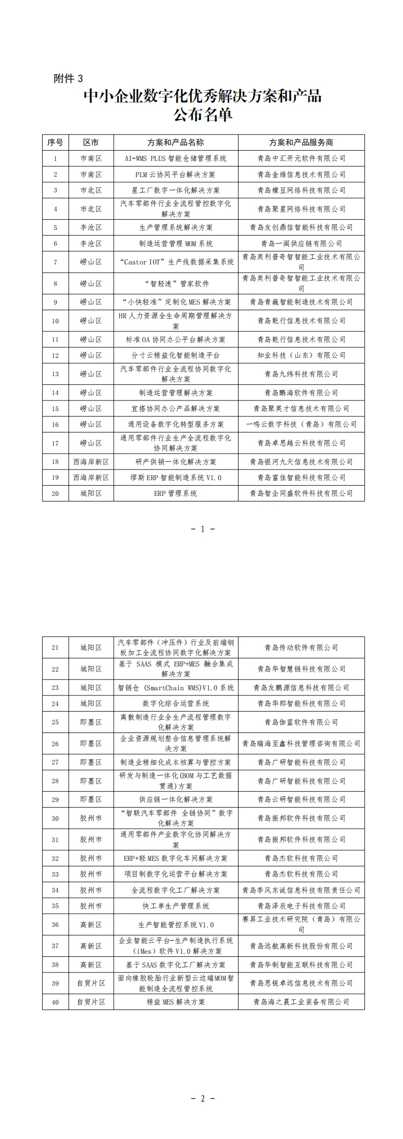 青岛|关于公布青岛市中小企业数字化转型城市试点“深度改造标杆企业、优秀服务商、 中小企业数字化优秀解决方案和产品” 名单的通知