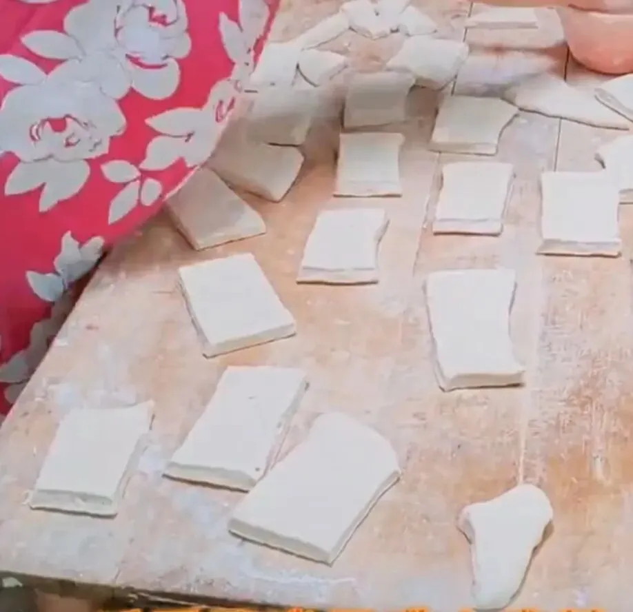 这个划刀并非装饰,而是为防止炸制时面鱼过度鼓胀变形,同时呢,又可以引导热量均匀渗透,使面鱼在油锅中自然舒展成柳叶状,形似游鱼,契合“面鱼”之名。