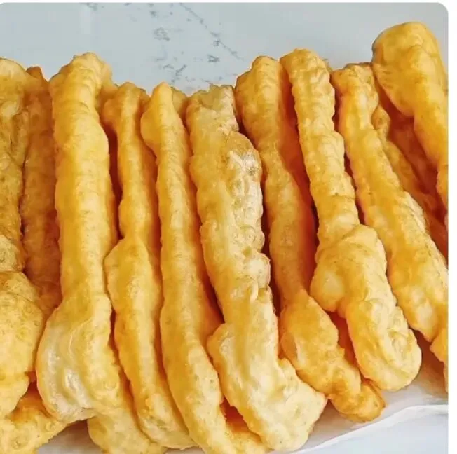 马上收到朋友好奇,你们龙口炸的这种不应该是大粿子吗,还是叫大油条?看哪里都不像鱼啊,来,你看,莱州做的这种才叫炸面鱼啊!