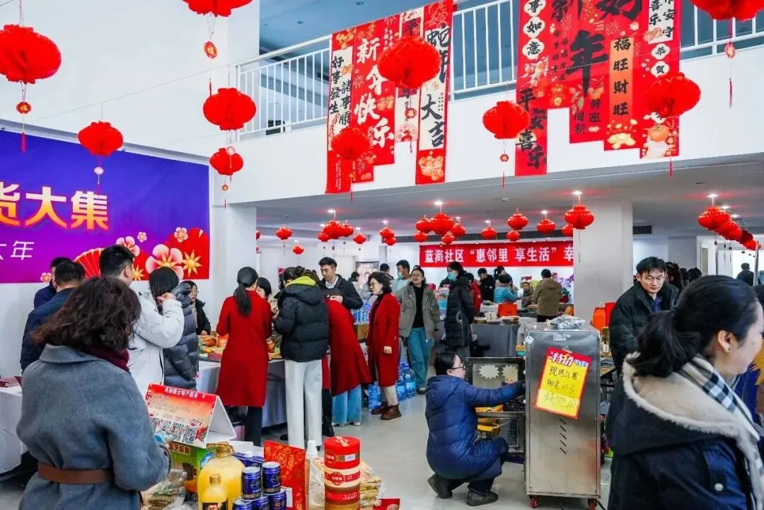 与此同时,蓝海社区“惠邻里·享生活”幸福集市也有序开展。集市每两月举办一次,轮流在辖区各小区举办,2025年累计开展活动7场,吸引2000余居民参加。集市融合了便民服务、旧物交换、义诊服务、政策宣传,成为汇聚社区烟火气、促进邻里交流的盛会。从磨刀理发到手工体验,从特产选购到趣味互动,“幸福集市”与“暖心食光”一道,共同构筑起蓝海社区“日常服务有温度、定期活动有活力”的全方位幸福生活图景。