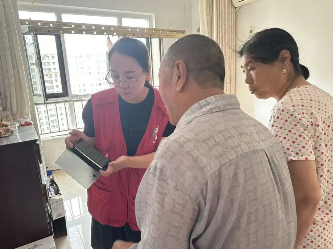 网格工作是整个社区工作的基础,对于网格内弱势群体的熟知和关爱更是重中之重。蓝海社区对网格员提出了提楼知户、提户知人、提人知事、提事知情、提情知策的“五提五知”要求,对于社区内20名独居老人、32名高龄老人和10名特殊群体,社区网格员成立起由社区工作者、楼栋长、志愿者、公益性岗位工作人员、爱心党员共同组成的“5+”“守护网”。日常的走访与问候,是这张网最基础的经纬。2025年,社区累计探访老人及特殊群体150余次,每一次走访中,社区网格员带着耐心与笑容,细致询问他们的健康情况、记录生活需求,志愿者定期上门陪着老人聊天、分享趣事,用欢声笑语驱散老人的孤寂。一位独居老人在一次探望中紧紧握着网格员的手,声音哽咽:“你们常来,我心里就开心,感觉党和政府一直就在身边。”