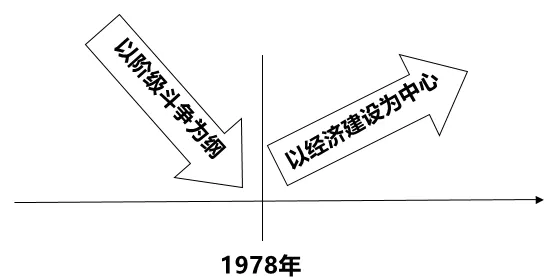 【详解】据题干图片可知,1978年前以阶级斗争为纲,1978年后以经济建设为中心。结合所学,1978年12月,十一届三中全会在北京召开。会议冲破了长期以来“左”倾错误的严重束缚,确定了解放思想、开动脑筋、实事求是、团结一致向前看的指导方针,果断停止使用“以阶级斗争为纲”的口号,作出了把党和国家的工作中心转移到经济建设上来,实行改革开放的历史性决策。十一届三中全会是新中国成立以来党的历史上具有深远意义的伟大转折,开启了我国改革开放历史新时期,B项正确;真理标准问题大讨论使人们认识到只有实践才是检验真理的唯一标准 ,排除A项;城市济体制改革全面实施在1984年,排除C项;社会主义市场经济体制确立在1992年,排除D项。故选B项。