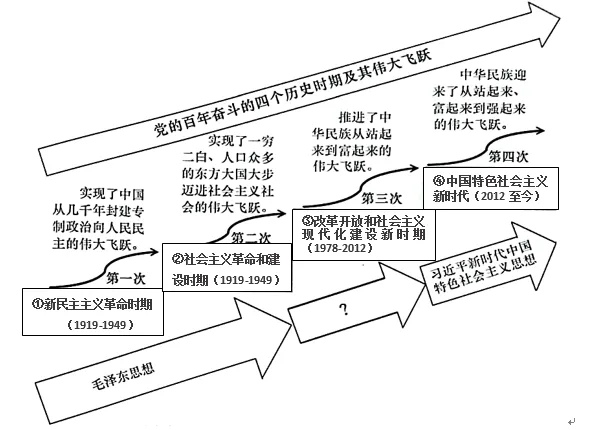(4)结合所学知识,指出图中③时期“马克思主义中国化”形成了哪些飞跃性的重大理论成果,列举两例图中④时期我们党提出并形成的全局性的战略布局。