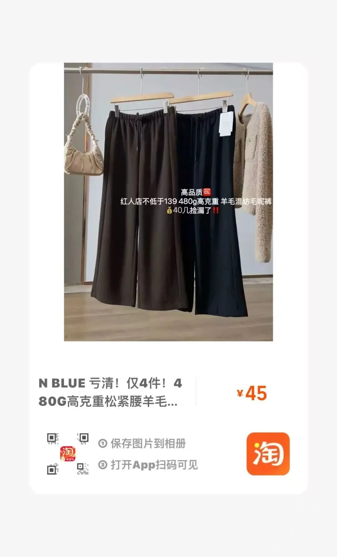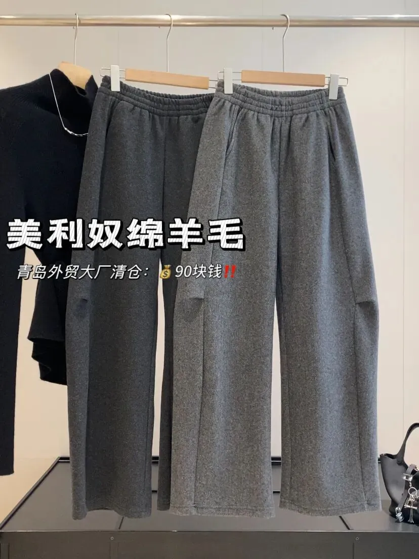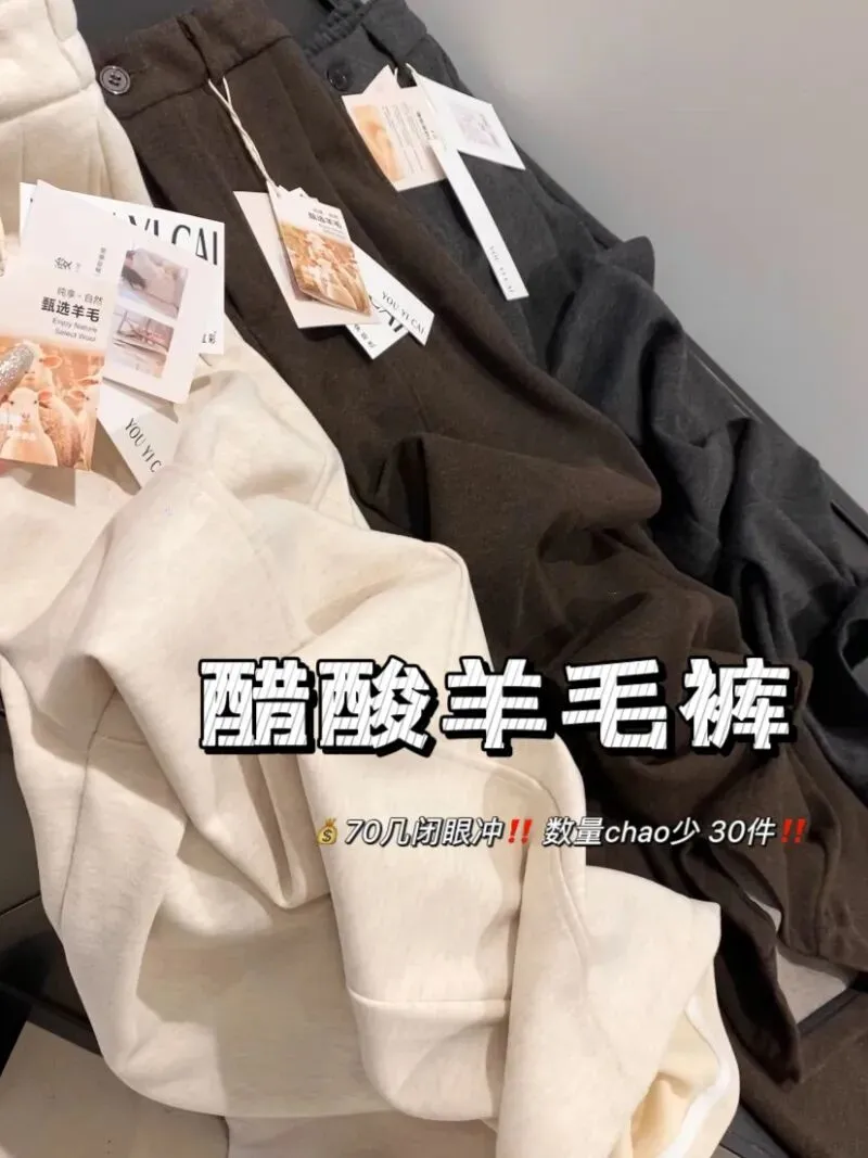 【淘宝】https://e.tb.cn/h.7qMMOtZixizCJUe?tk=5PG9USTvBog MF168 「IN BLUE 醋酸羊毛!自带高级感通勤休闲风百搭阔腿毛呢休闲裤西裤」