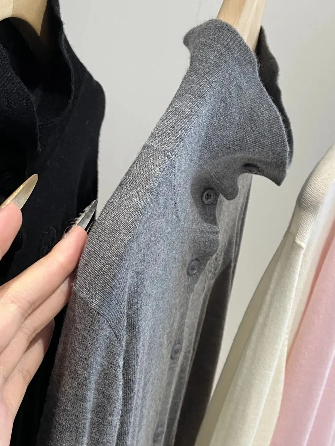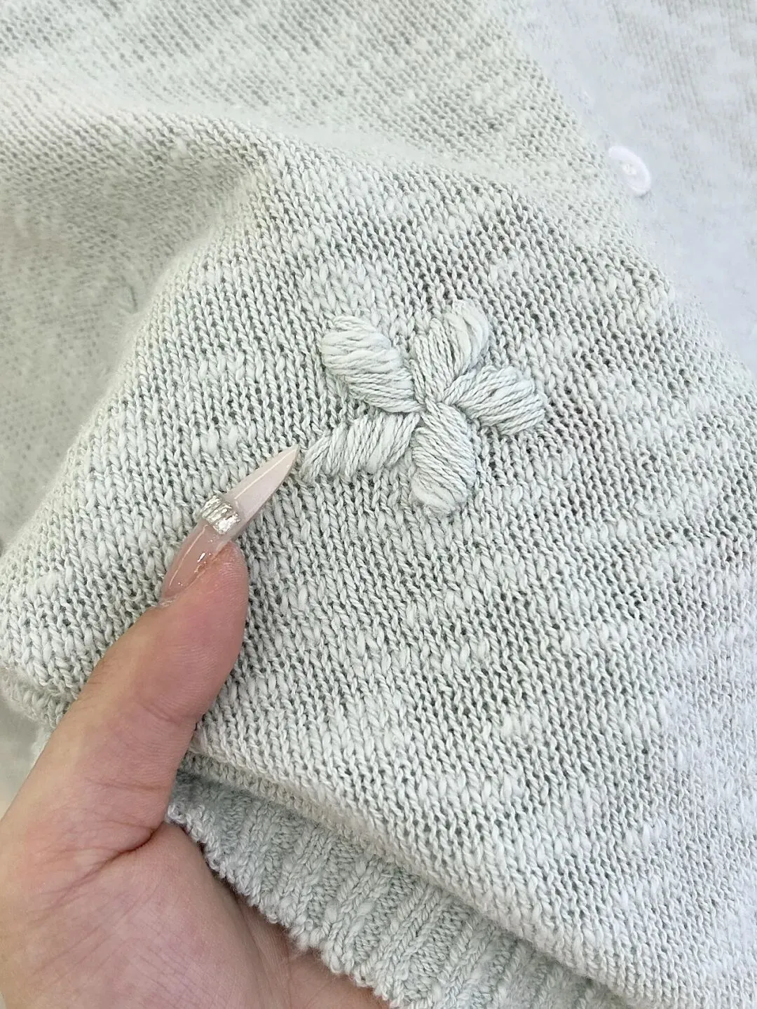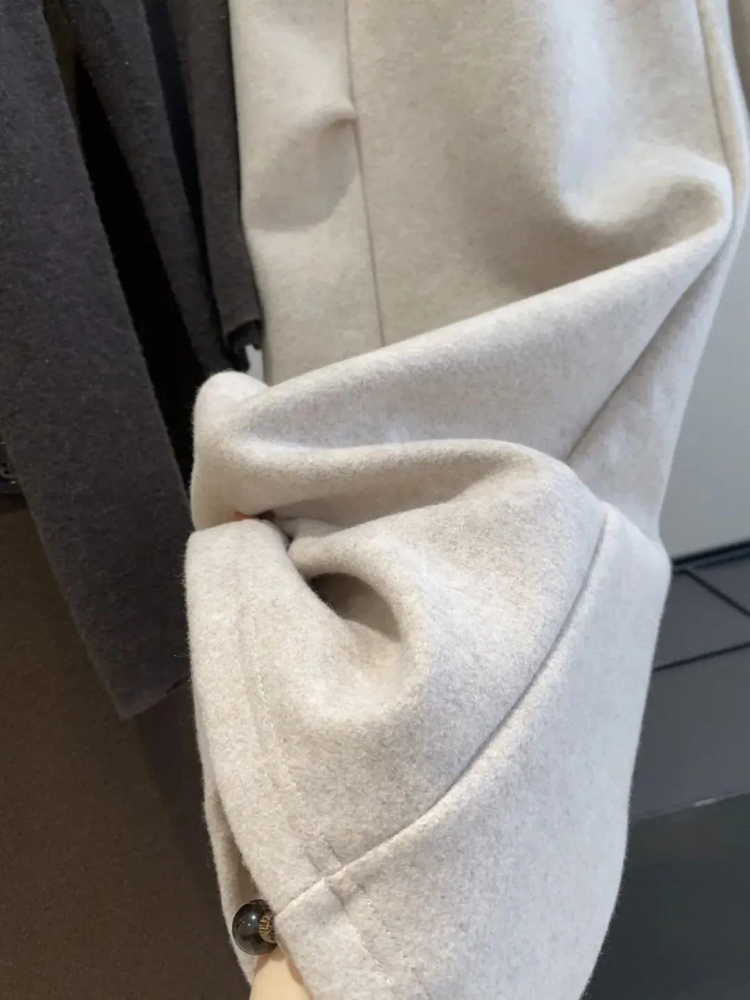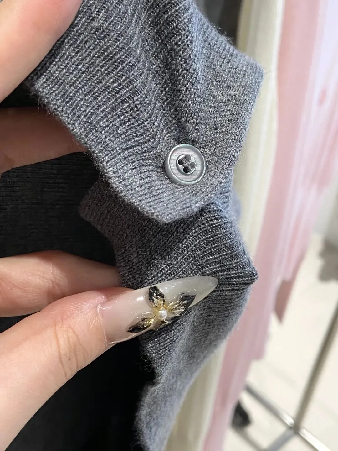 它纽扣也都是同色系,内里有珠光细闪在