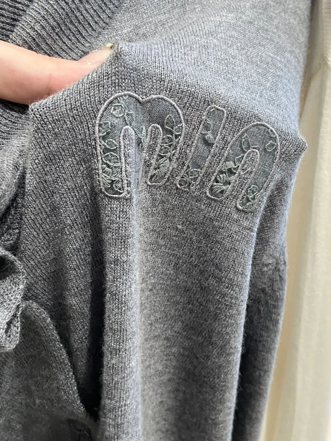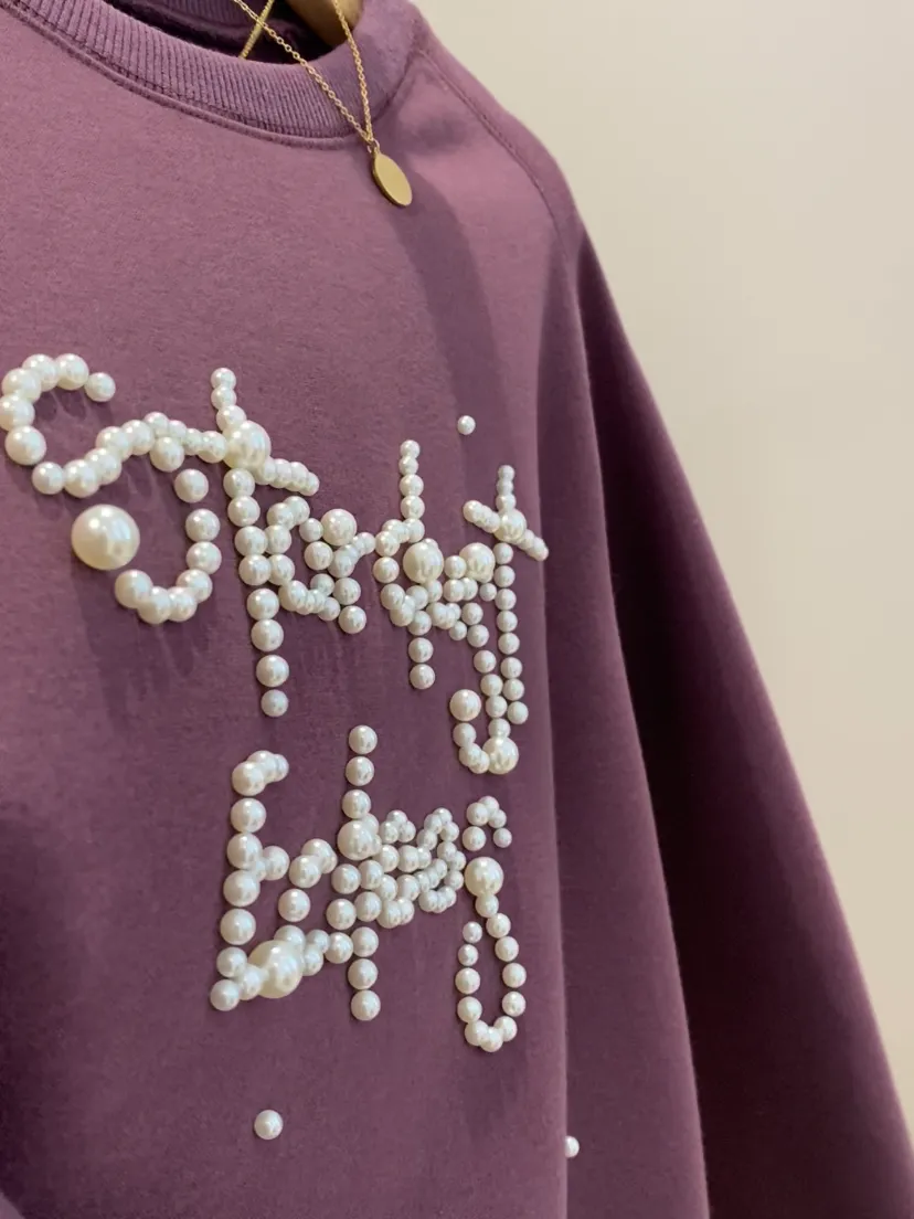 这款左侧胸前字母刺绣是拼接了同色系镂空蕾丝