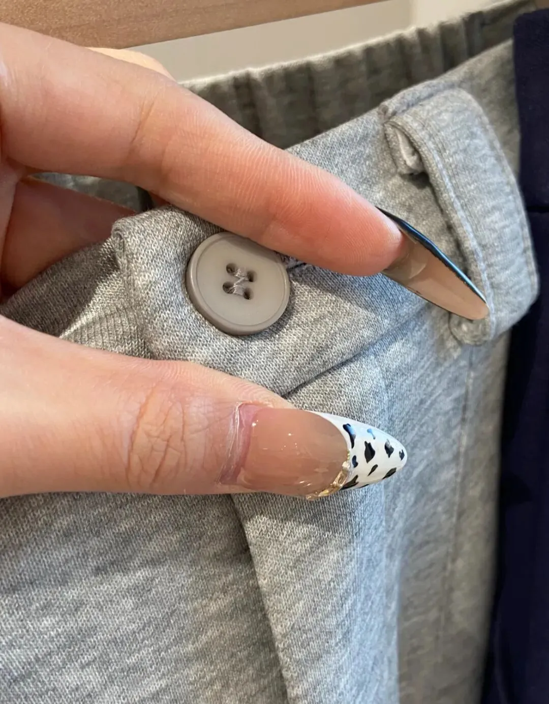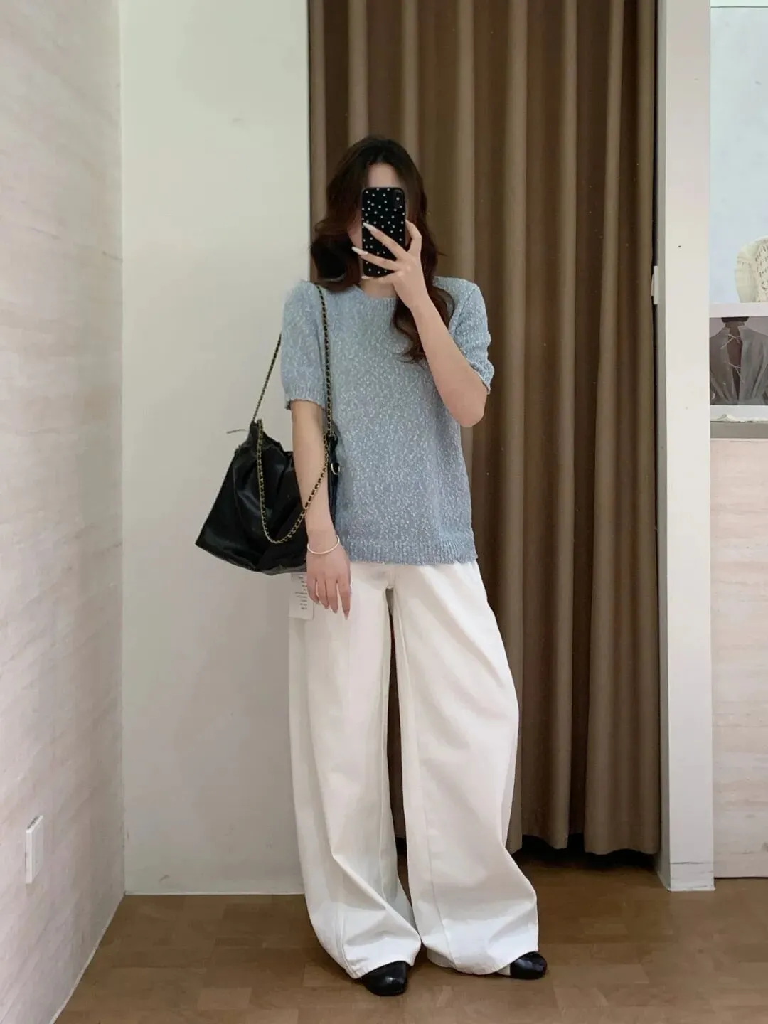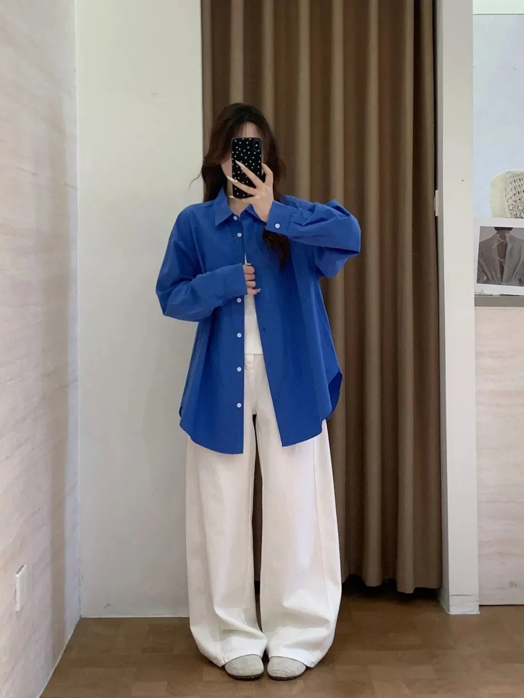 领口是半扣的,解开一颗的我觉得会更加有松弛感