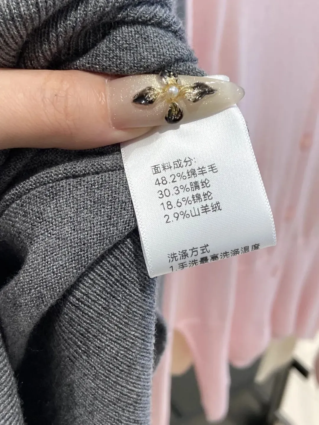 48.2%绵羊毛,再加上2.9山羊绒面料